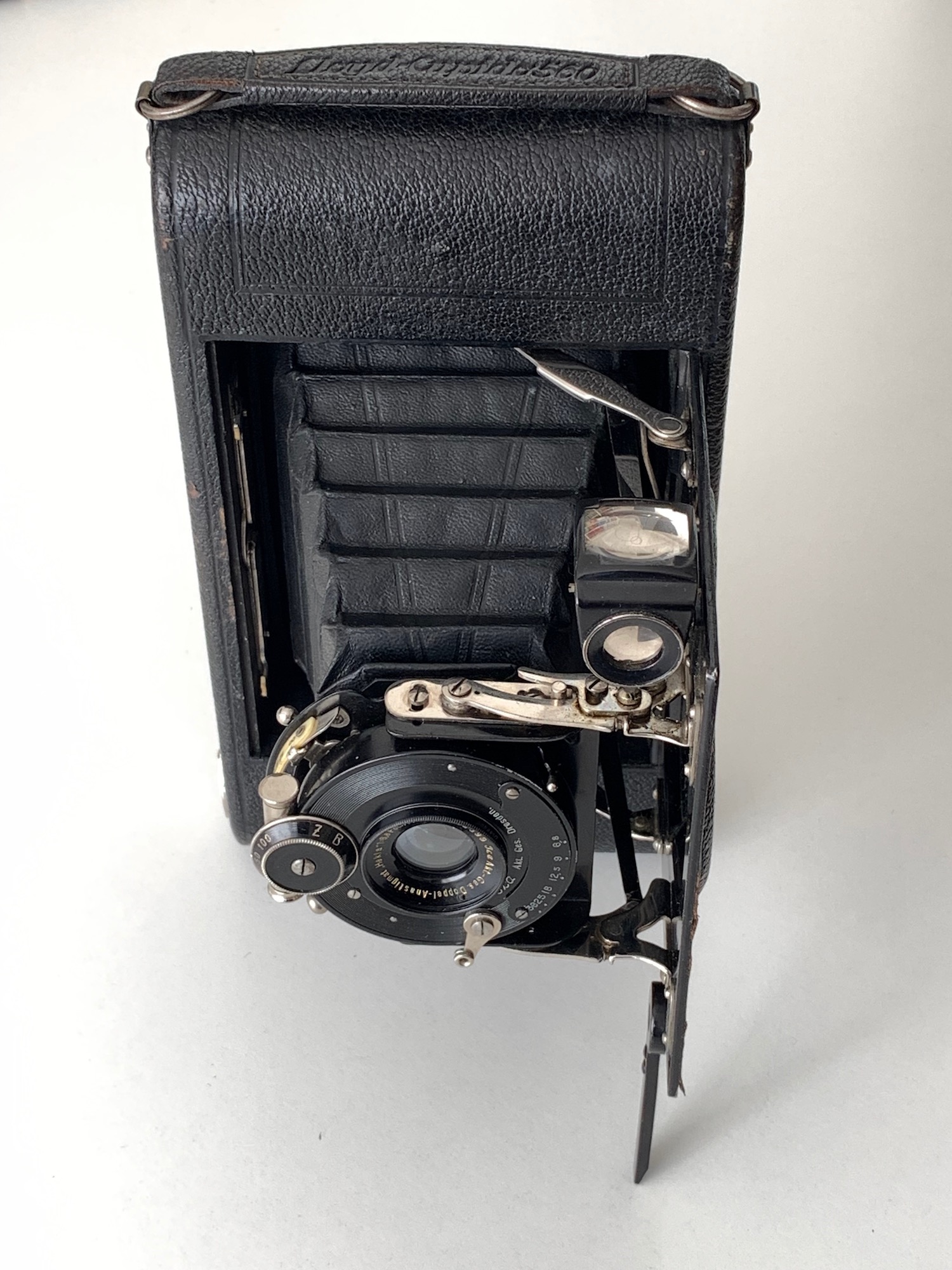 Hersteller: Ica Modell 560 Typ: Rollfilmkamera Format: 8,5x10 Querformat, Film 118 Opt. Ausstattung: Hekla 6,8/10,5 in Automat XI (1–100) Entfernungseinstellung: Gesamtobjektivverstellung Brillantsucher, umlegbar; Aufstellfuß für Hochformat Baujahre: 1922–1926