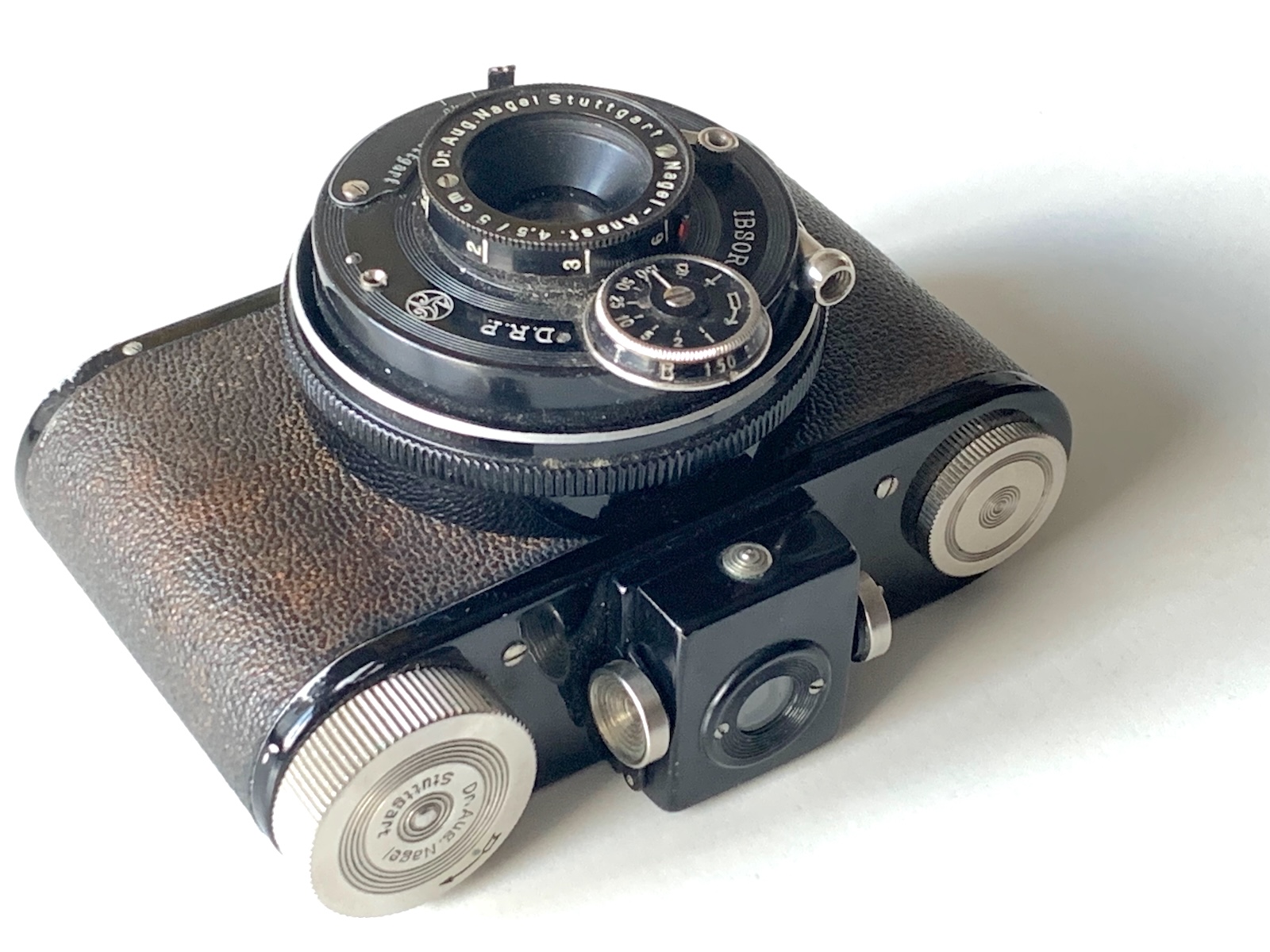 Bemerkenswert ist, dass es bei dieser einfachen Kamera, die es auf insgesamt nur 2.200 Einheiten brachte, eine ganze Reihe von Varianten gibt, die die Konstruktion des Tubus betreffen. Auf Bildern im Netz und in den Sammlerkatalogen findet man auch Ausführungen mit festem Tubus (https://knippsen.blogspot.com/2025/01/nagel-ranca-461.html) oder anders geformtem Griffring bzw. anders ausgeführtem Flansch.