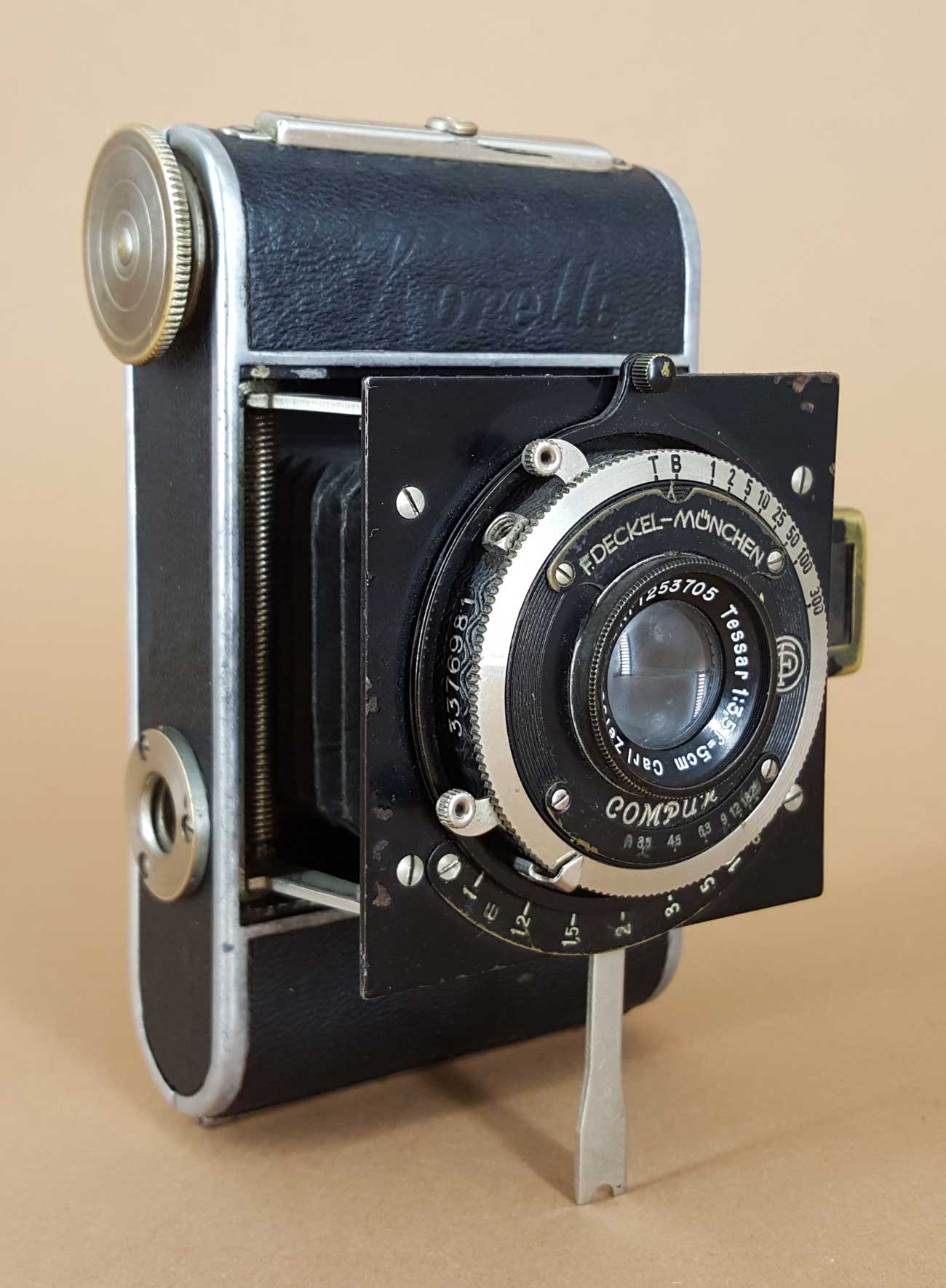 eine Korelle (ohne Schriftzug) mit Schneider Xenar 3,5 und Gesamtobjektivverstellung in Compur,