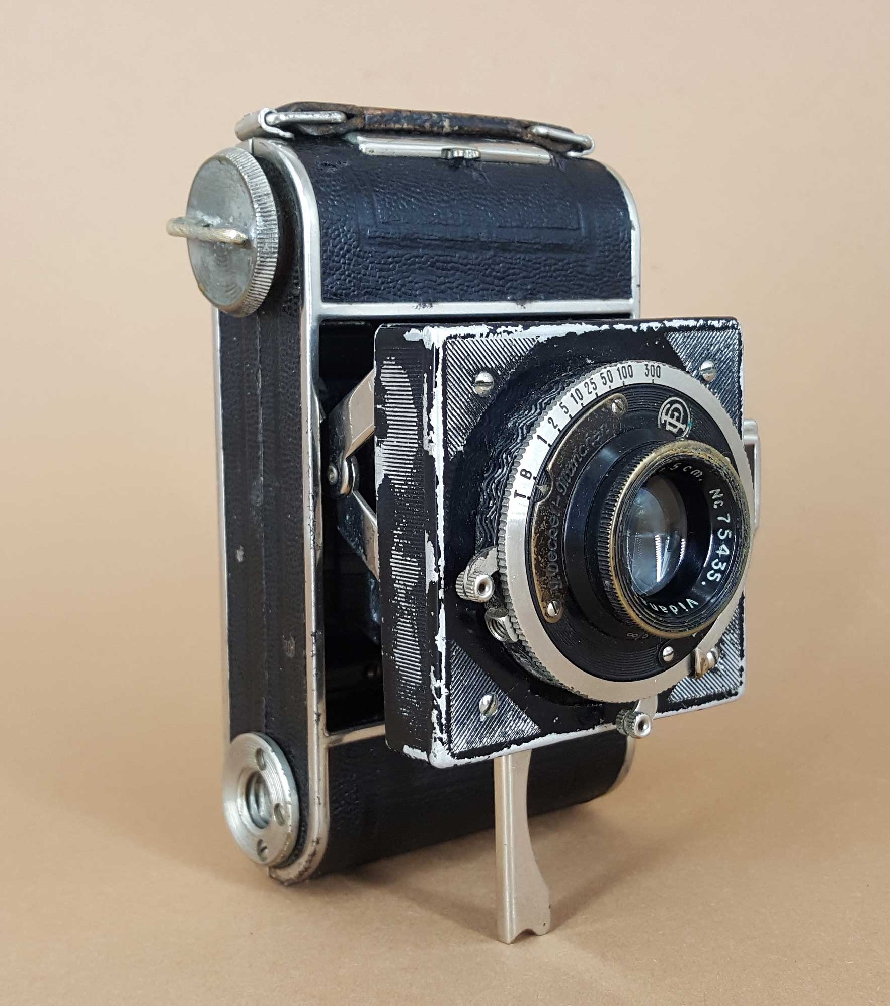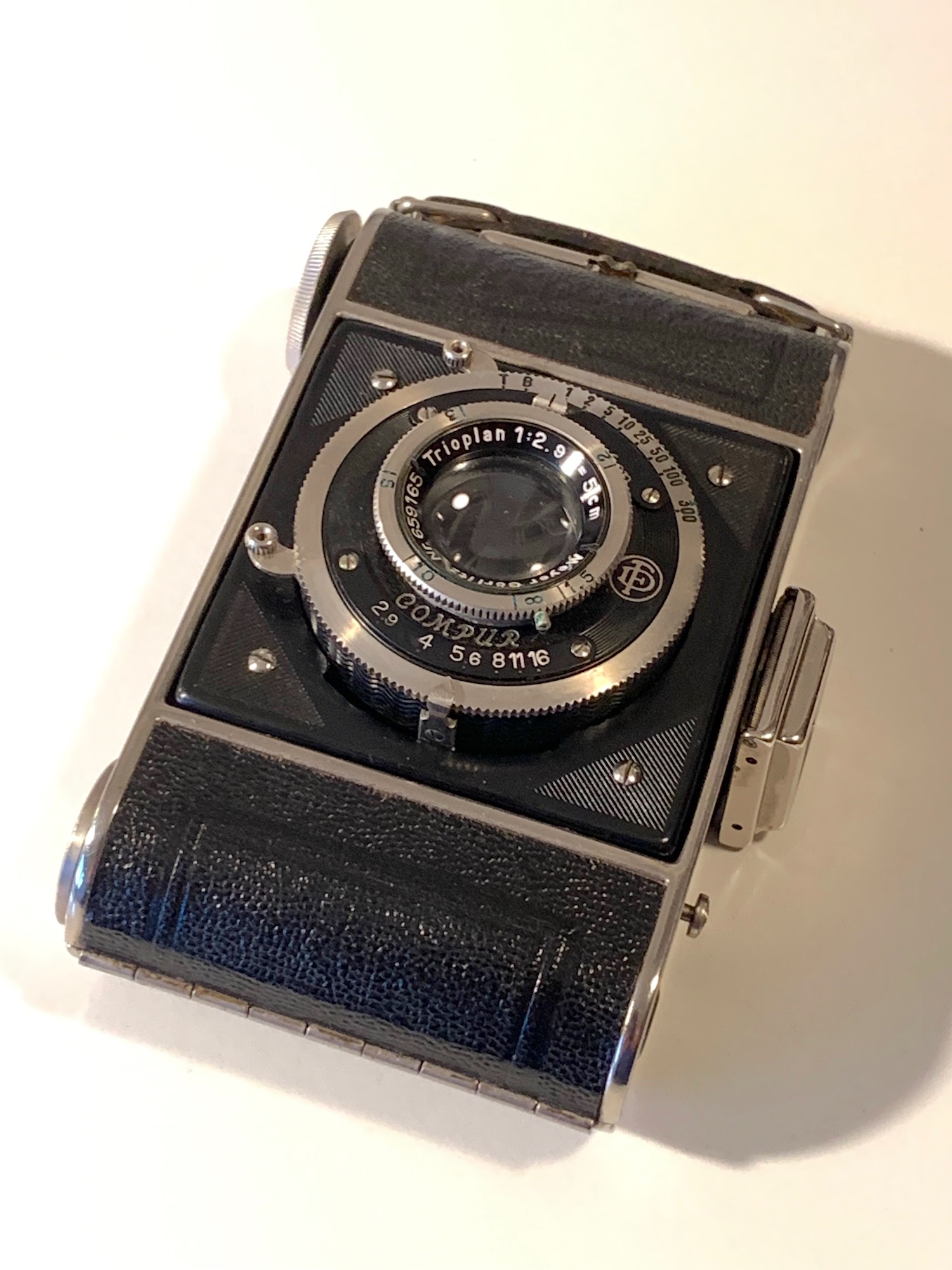 Hier nun eine 3x4-Kamera, die auf den ersten Blick eine gewisse Ähnlichkeit mit der Kochmann Korelle aufweist – gerade im geschlossenen Zustand – und daher häufig mit ihr verwechselt wird, aber viel seltener ist: die Balda Piccochic.