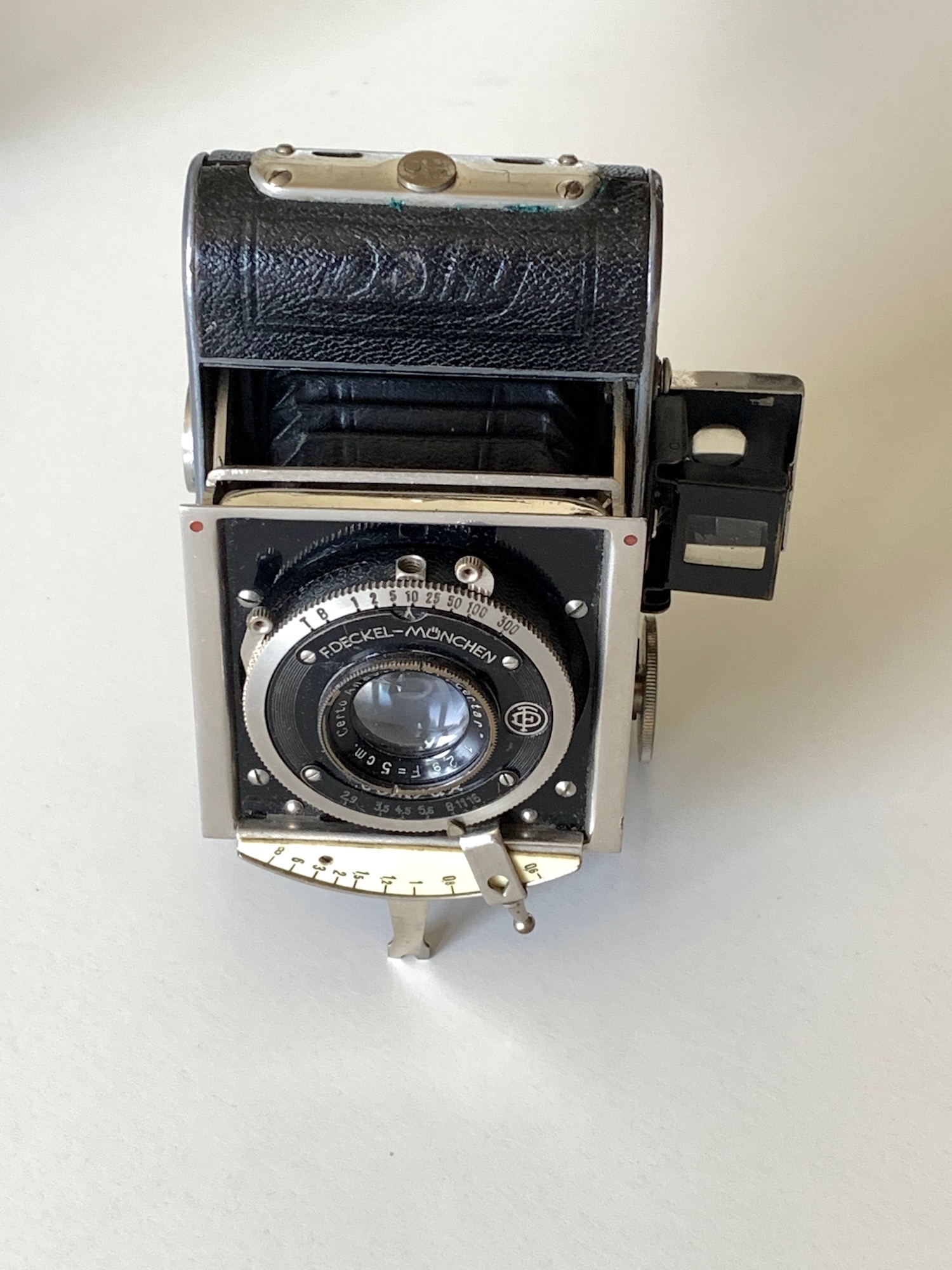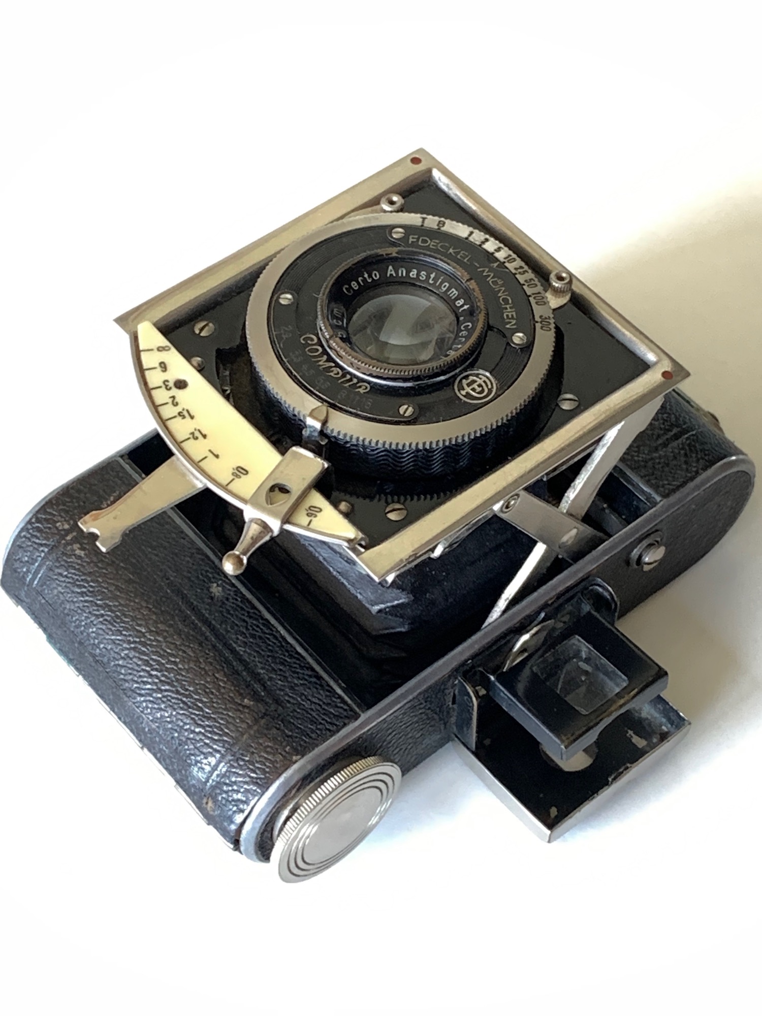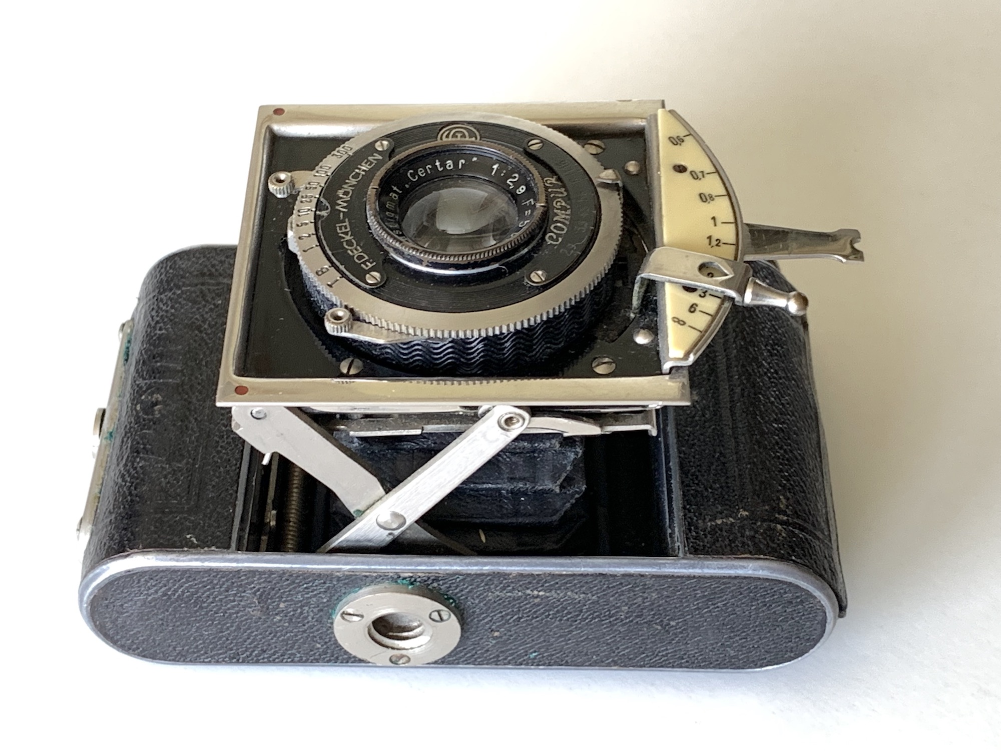 Der Newtonsucher ist hier auf dem Gehäuse angebracht; es gibt auch Exemplare, bei denen er auf der Standarte sitzt. Als Objektiv dient hier ein vergleichsweise lichtstarkes Certar 2,9/5 in Compur. Das Modell kostete in dieser Ausstattung zu Beginn der 30er Jahre 76,50 RM.