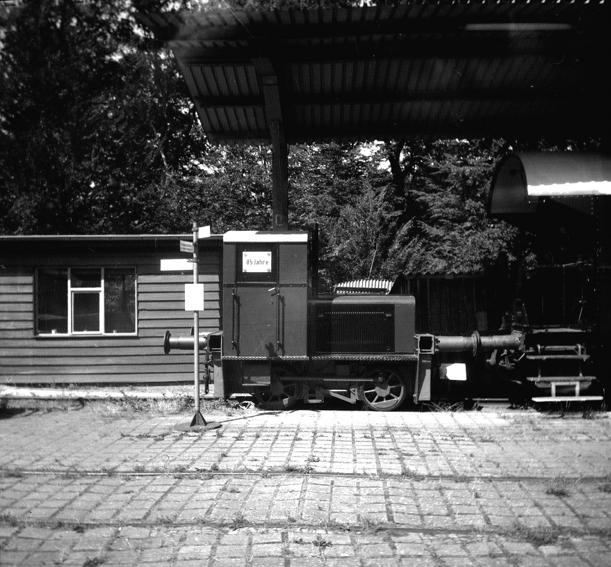 Hier noch ein paar Beispielfotos. Aufgenommen an einem sehr sonnigen Sonntag im Juli 2022 im Lokschuppen Aumühle bei Hamburg. Film Fomapan 100, Einstellungen an der Kamera "M" und "Sonne", entwickelt in Rodinal 1:50, 9 Minuten bei 20 Grad
