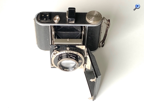 Ansonsten ist die Ausstattung der Kamera normal, sieht man vom recht lichtstarken Objektiv ab: Verbaut ist ein Tessar 2,8/7,5 mit Frontlinseneinstellung in Ring-Compur mit Selbstauslöser. Es gibt einen umlegbaren Fernrohrsucher und einen Zubehörschuh auf der Oberseite. Die Korelle 6x6 kam 1932 auf den Markt und kostete in dieser Bestückung 112 RM.