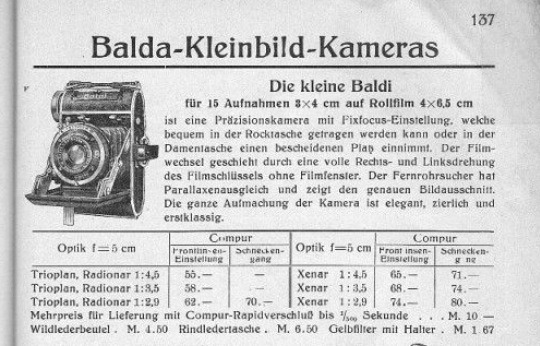 Hier ein Überblick über die Merkmale der Baldi (Prospekt Photo-Annacker 1937):