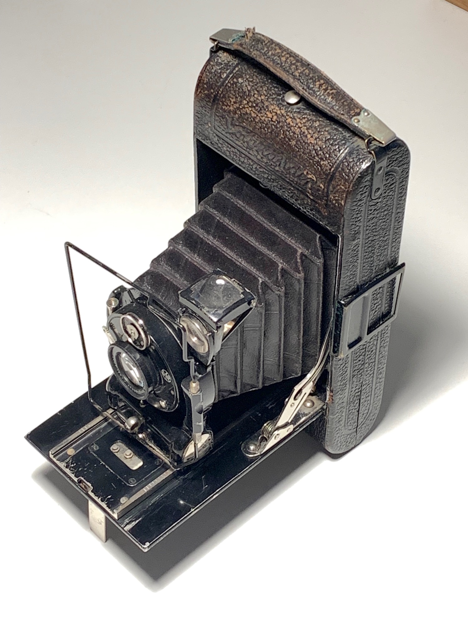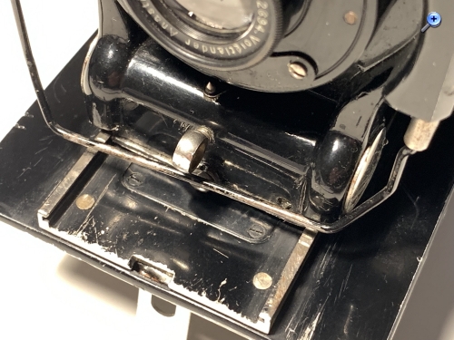 Voigtländer hat diesen Weg nicht weiterverfolgt; Anfang der 1930er Jahre erschienen aber die sog. Springkameras, bei denen der Laufboden ebenfalls automatisch ausfährt, allerdings mit anderer Technik. – Diese sollen an anderer Stelle vorgestellt werden; die Perkeo 3x4, die in diese Reihe gehört, habe ich kürzlich schon einmal gezeigt (https://blende-und-zeit.sirutor-und-comp...&thread=134).