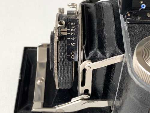 Das Modell war in mehreren Ausstattungsvarianten erhältlich. Hier sehen wir eine bessere Variante mit Schneider Xenar 3,5/5 mit Schneckengangverstellung in Compur 1–1/300. Die Kamera ist mit einem optischen Klappsucher ausgestattet und besitzt für den Filmtransport ein griffiges Rad. Sie wurde für 85,50 RM angeboten. Es gab auch eine Version mit Leitz Elmar.