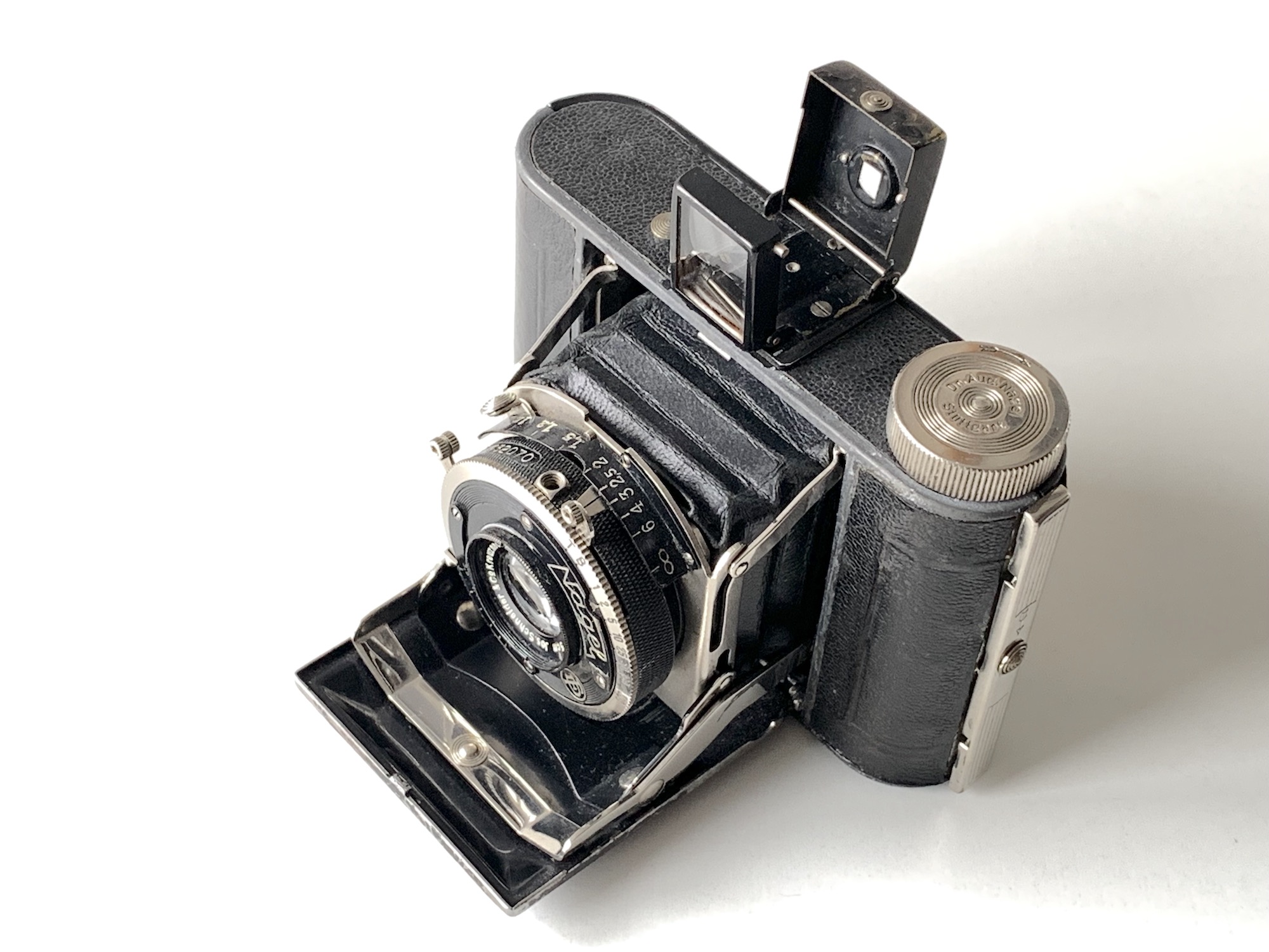 zu den interessanteren 3x4-Rollfilmkameras gehören die Produkte der Firma Nagel aus Stuttgart. August Nagel, der zuvor in leitender Position bei Zeiss Ikon tätig gewesen war, gründete 1928 wieder eine eigene Kamerafabrik in Stuttgart. Im Segment der 3x4-Kameras gab es die Tubuskamera Pupille, die bereits an anderer Stelle vorgestellt wurde (https://blende-und-zeit.sirutor-und-comp...&thread=233), und ein Modell der Vollenda-Serie im gleichen Format.