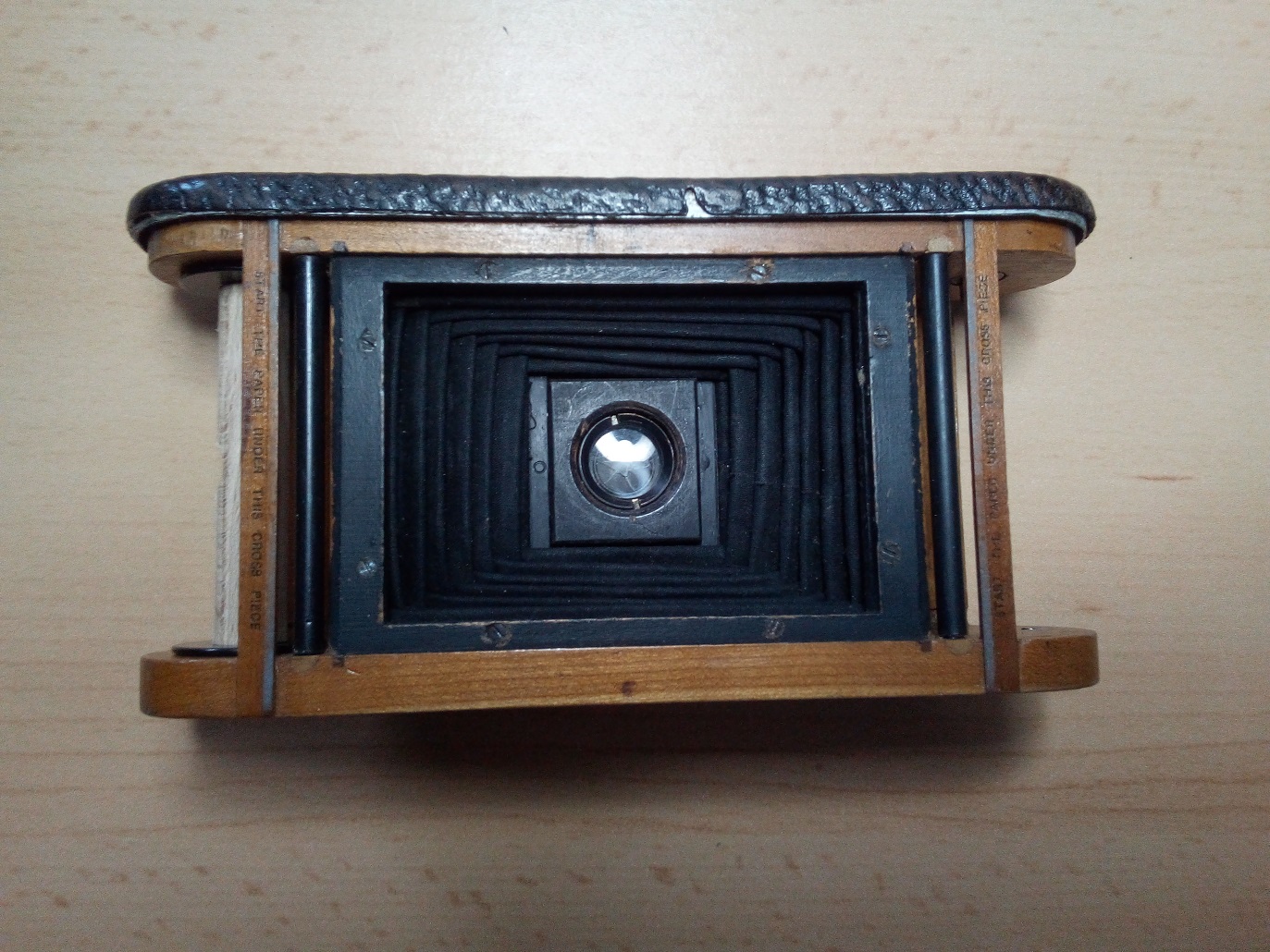 Was mich etwas irritiert ist die Tatsache, dass angeblich ab MODEL D die Objektivstandarte aus Metall sein soll. Diese Kamera hier hat aber noch eine Standarte aus Holz. Entweder handelt sich um ein Übergangsmodell in dem noch Restbestände verarbeitet wurden oder Deine Quelle, die die Metallstandarte erst ab MODEL E beschreibt, hat Recht.