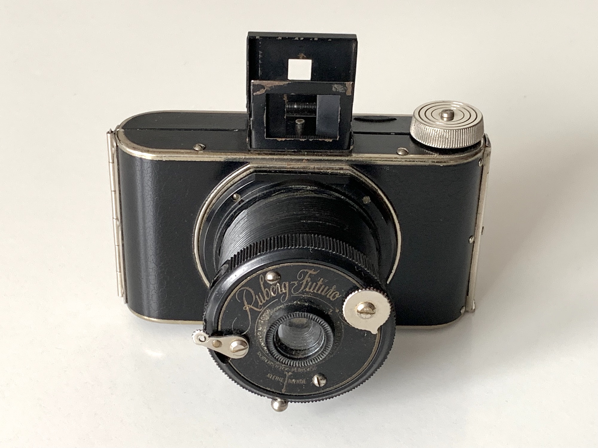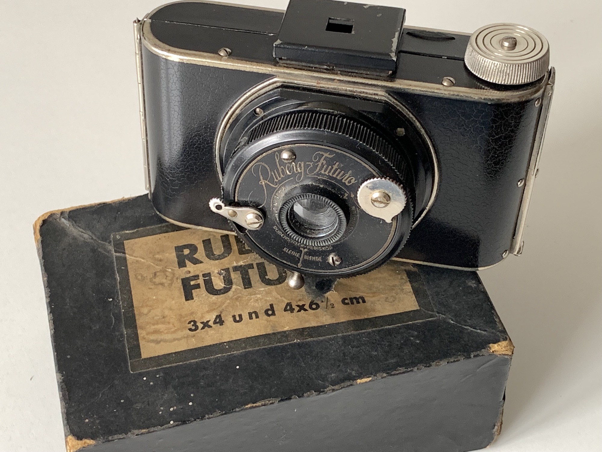 die Hagener Firma Ruberg & Renner brachte Mitte der 1930er Jahre eine sehr einfache und dennoch interessante Zweiformat-Kamera heraus, die Ruberg Futuro. Es handelt sich um eine Rollfilmkamera für die Formate 4x6 und 3x4, belichtet wird auf 127er Rollfilm.