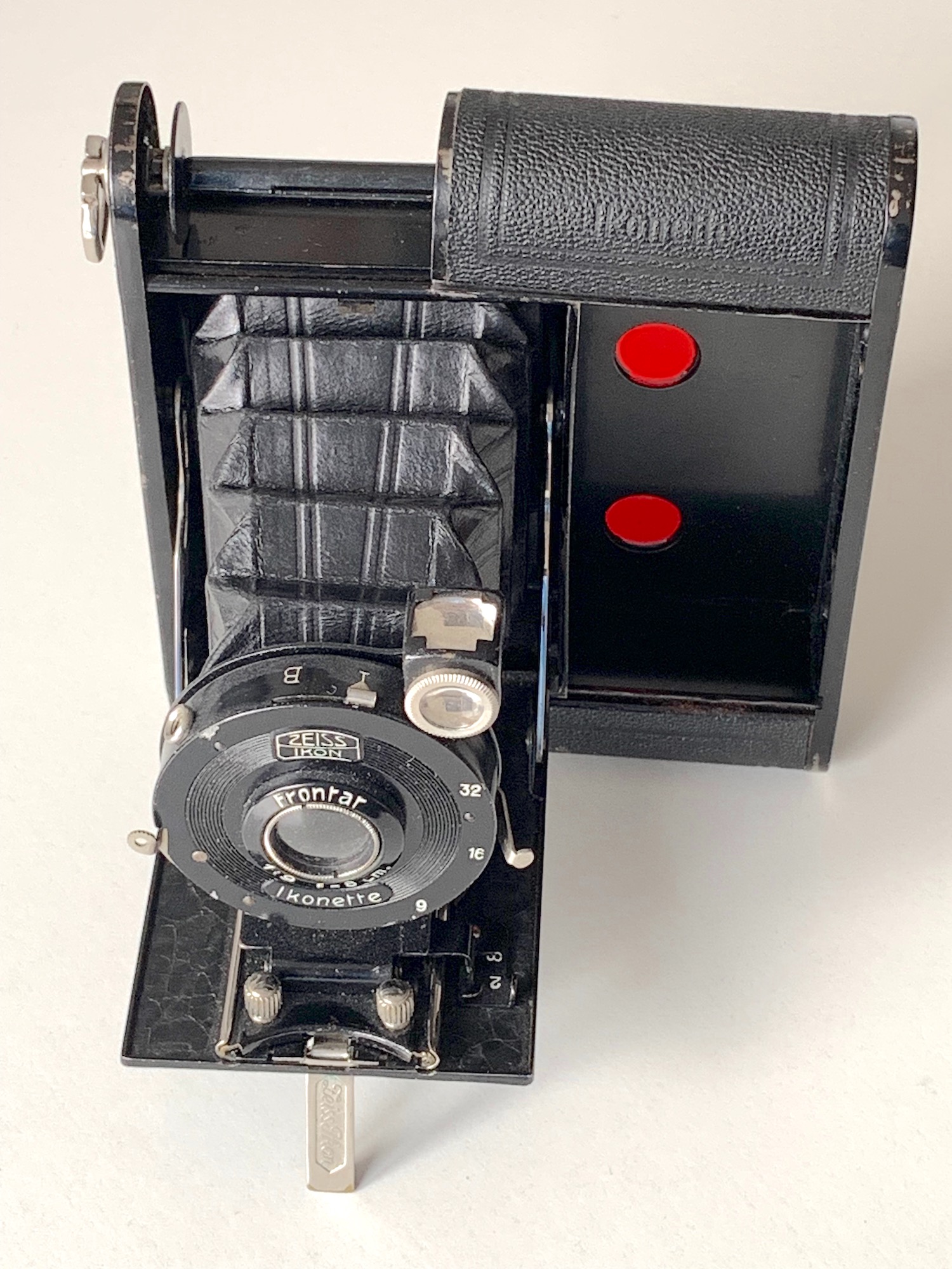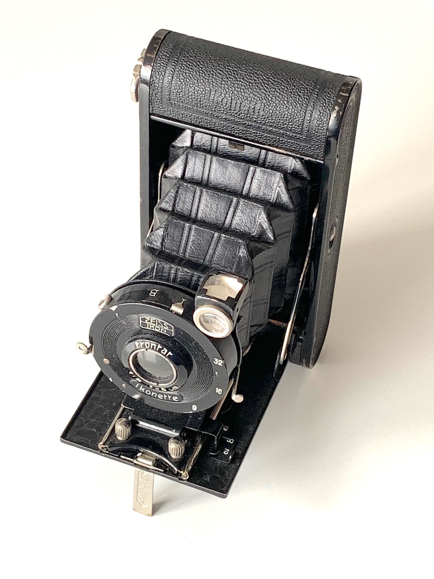 die Ikonette ist eine der ersten Zeiss Ikon-Kameras nach der Fusion. Es handelt sich um eine sehr einfache, etwas blecherne Laufbodenkamera für Rollfilm 127. Konstruktiv ist eine Nähe zu Contessa Nettel-Kameras wie Cocarette und Piccolette erkennbar; ein Gehäuseteil wird seitlich abgezogen. Die Ikonette war für den Rollfilm 127 bestimmt und zunächst für das Format 4x6,5 vorgesehen, in dieser Version kam sie im Jahr 1928 als Modell 504/12 auf den Markt (im Museum hier zu finden: https://blende-und-zeit.sirutor-und-comp...&thread=142).