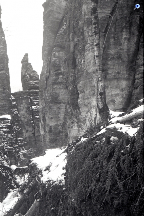 Diese Kamera ist bisher meine einzige mit einem „Fadenauslöser“. Beim Kameratest mit Film musste ich diesen speziellen Auslöser natürlich auch unbedingt einmal ausprobieren (Testbild 3). Leider zeigte sich bei den Testbildern, dass der Fokus der Kamera nicht mehr richtig eingestellt ist. Alle drei dargestellten Testaufnahmen wurden mit Fokus auf ‚unendlich‘ aufgenommen. Die Kamera fokussierte jedoch auf den Vordergrund. Das fällt bei den zwei ersten Aufnahmen noch nicht ganz so extrem auf, da diese Bilder mit Langzeitbelichtung und Blende 18 bzw. 25 aufgenommen wurden. Das „Selfie“ mit dem Fadenauslöser (Bild 3) wurde jedoch mit offener Blende und 1/25 s aufgenommen und hier sieht man deutlich die Defizite beim Fokus.