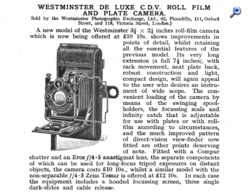 ist schon fast eine Phantom-Kamera, zu der man wenig findet. Nichts über Westminster im Kadlubeck, McKeown, WWW. Im Abring nur eine Stereokamera. Sucht man bei Welta als Modell Westminster auch nichts ...