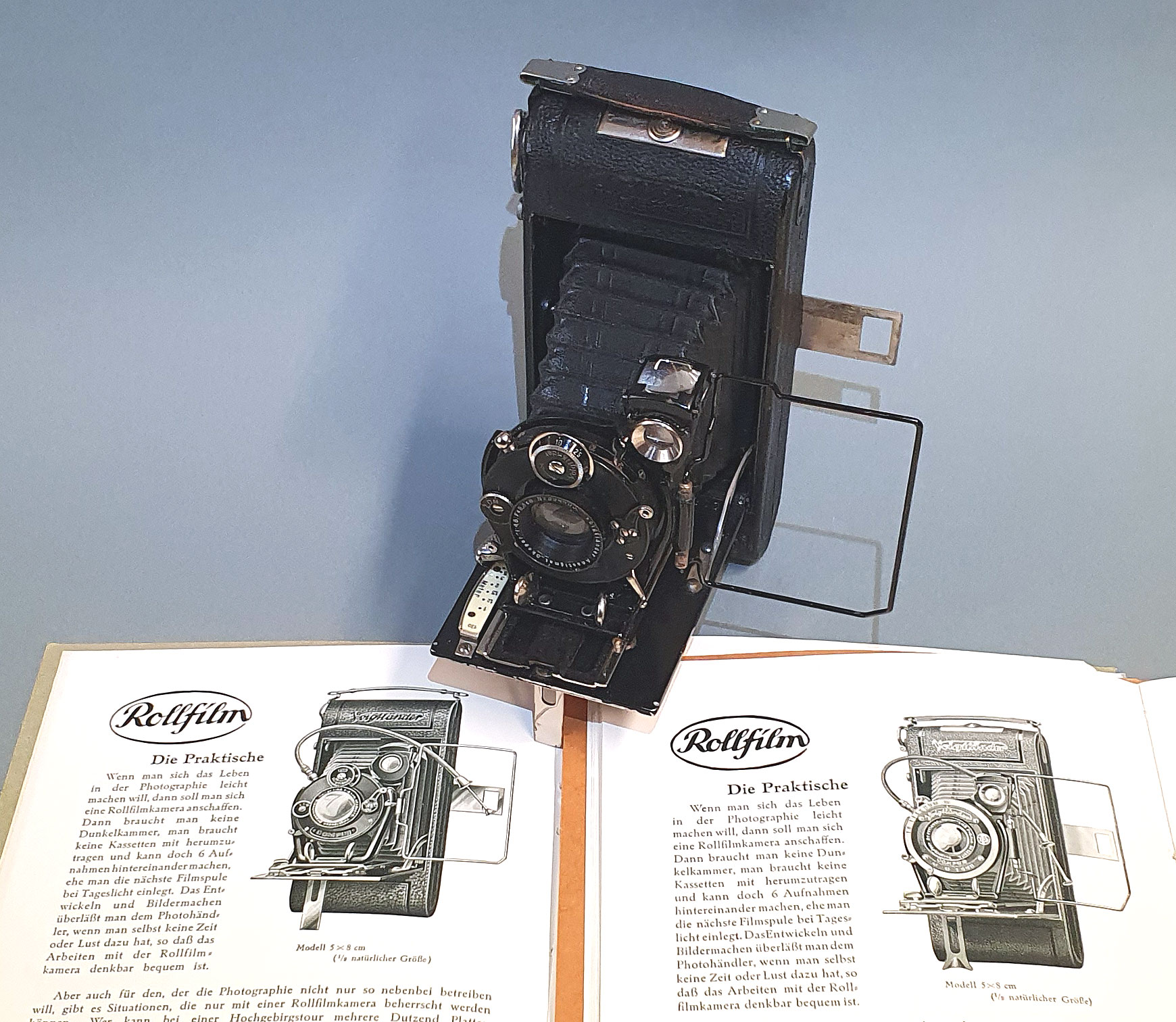 Bei den Kameras im Format 6x9 und 6,5x11 veränderte man 1930 das Gehäuse und vereinfachte die Laufbodenmechanik. Die 5x8 blieb diesbezüglich unverändert, späte Kameras haben statt des Rad-Compurs dann aber einen Ring-Compur verbaut. Diese Variante fehlt hier noch. Das Modell 5x8 blieb bis 1932 im Programm.