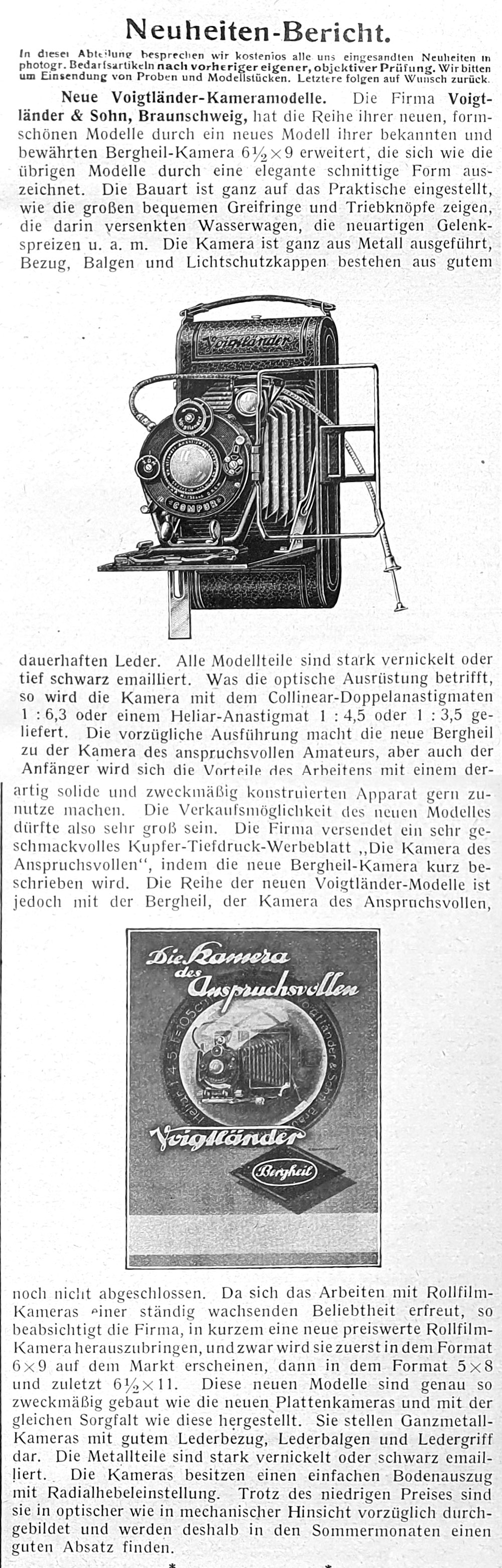 Das Topmodell war mit dem Heliar 4,5/8,3 cm in Compur ausgerüstet, der schnelle Verschluss qualifizierte die Kamera zur "Sportkamera".