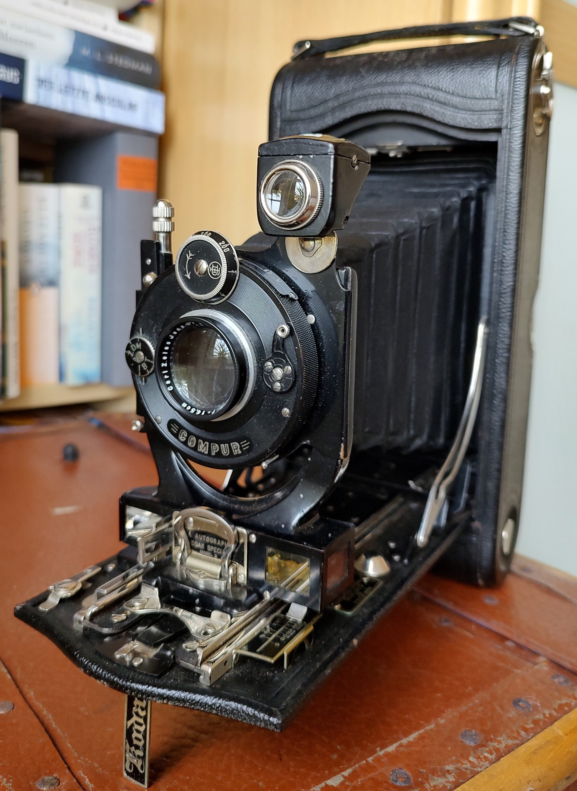 Ich möchte heue eine eindrucksvolle Laufbodenkamera vorstellen, die über 100 Jahre alt ist und noch immer funktioniert, die „Kodak 3A Autographic Special (Modell B)“: