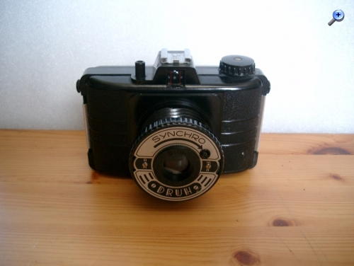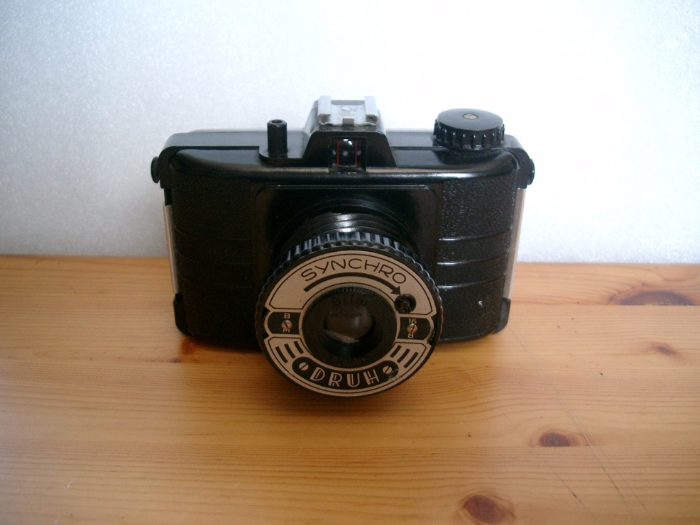 Hersteller: Warszawskie Zakłady Fotooptyczne (Polen) Modell: Druh Synchro Typ: Rollfilm (120) Sucherkamera für 6 x 6 oder 4,5 x 6 Negative Baujahr: 1956 - 1960 Verschluß: Einfachverschluß mit "B" oder "M" (1/50 sec) Blenden: 8 und 16 Objektiv: Bilar 1:8 / 65 Fokus: Fixfokus