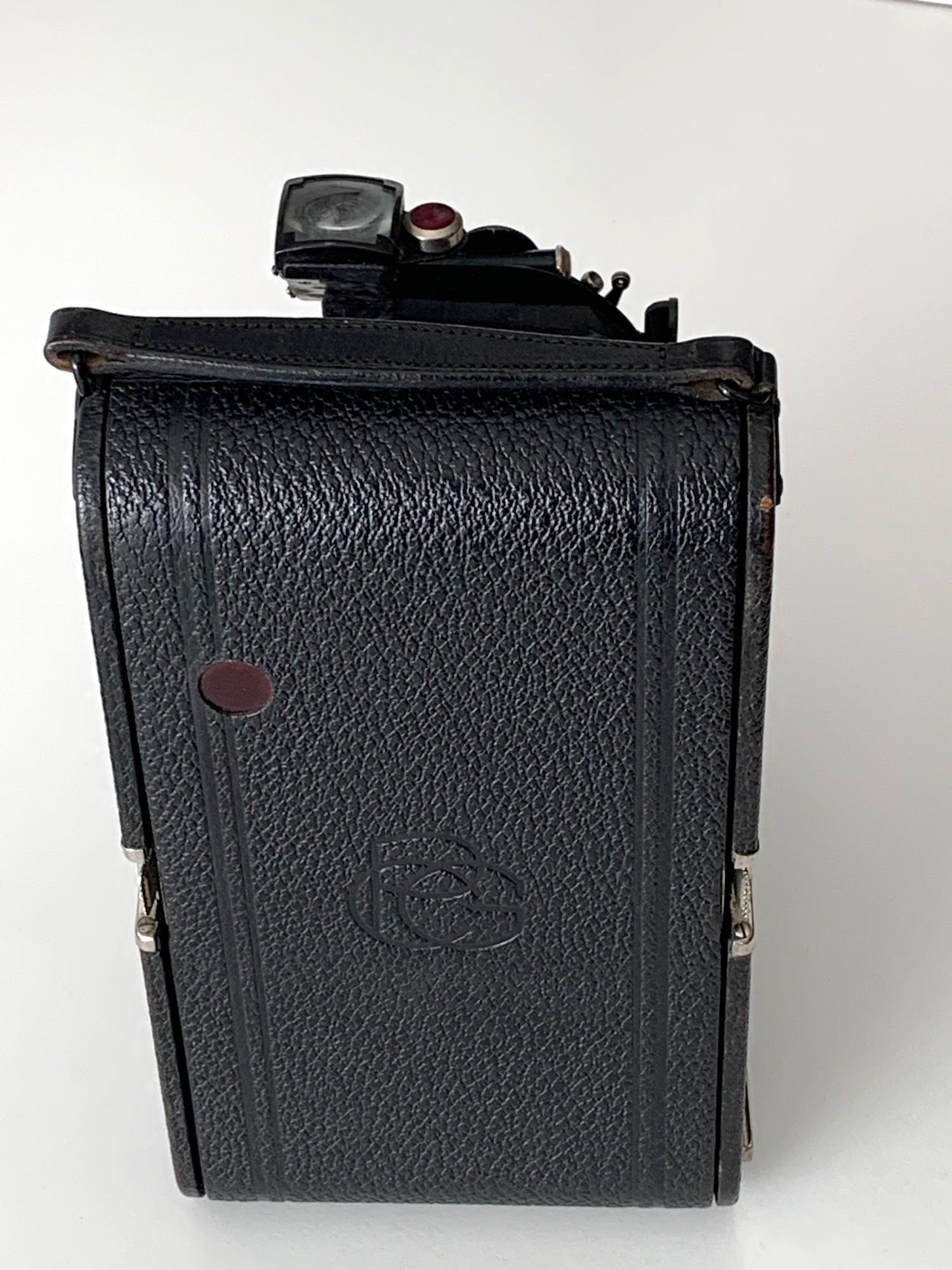Interessanterweise bietet die Kamera in der vorliegenden Ausstattung keine Möglichkeit, eine Plattenkassette anzusetzen, obwohl viele Kameras dieses Formates für Rollfilm und Platte ausgelegt waren. Es ist zu vermuten, dass dafür ein gesondertes Rückteil mit Falz montiert wurde. Das kann ich aber nicht verifizieren, da mir kein zeitgenössischer Goerz-Katalog vorliegt. Überhaupt ist die Literaturlage zu den Goerz-Kameras recht dürftig.