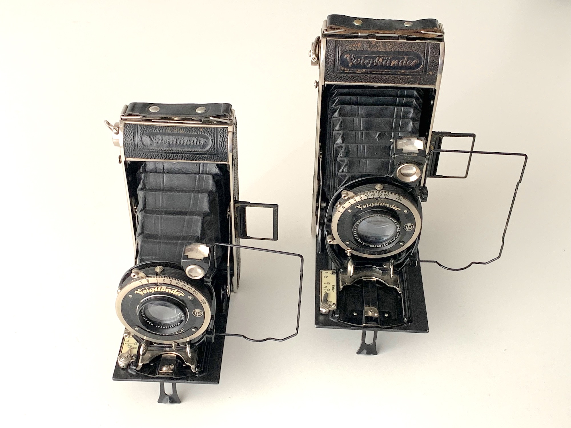 Die Kameras waren wie das Vormodell mit verschiedenen Objektiven und Verschlüssen lieferbar. Die Kamera im Format 6x9 ist hier mit einem Skopar 4,5/10,5 in Ring-Compur mit Selbstauslöser ausgestattet. In dieser Version war die Kamera für 95 RM zu haben. Die große Variante in 6,5x11 besitzt ein Heliar 4,5/11,4 in Ring-Compur mit Selbstauslöser. In dieser Top-Ausstattung kostete sie 130 RM.