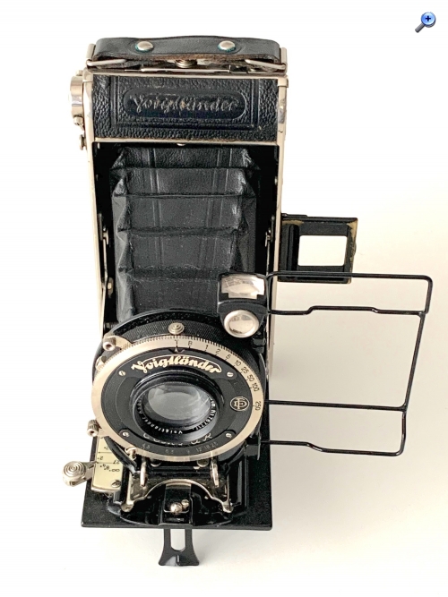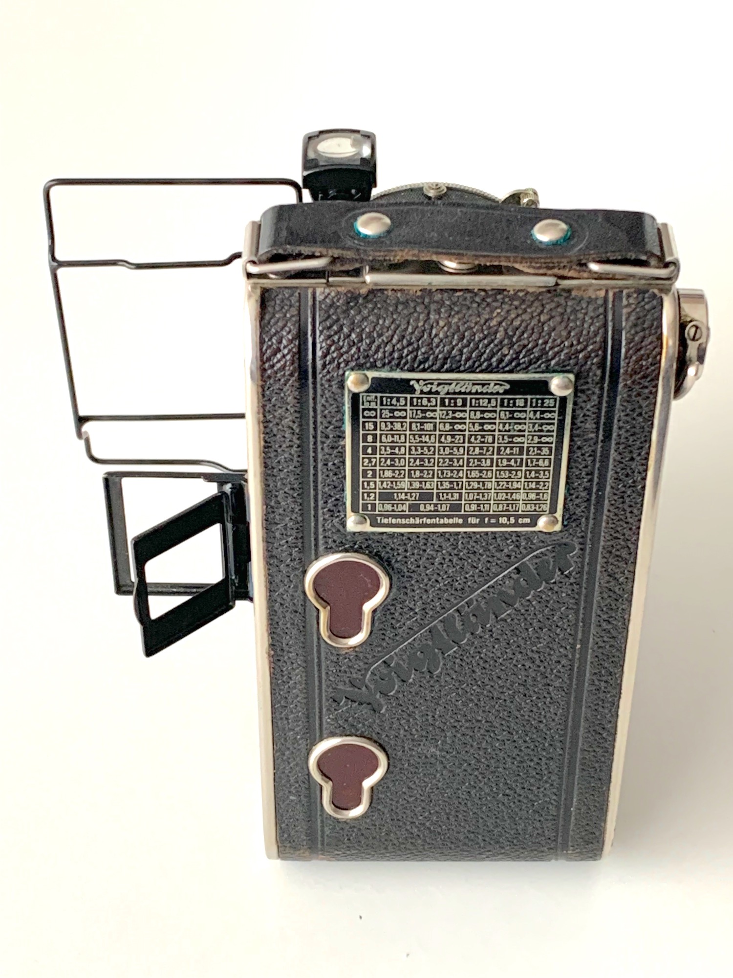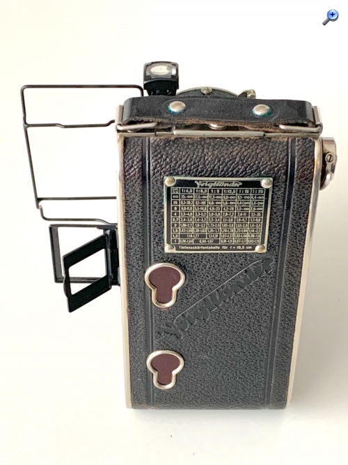 Ansonsten entspricht die Kamera der Rollfilm 6x9. Das gezeigte Exemplar ist mit einem Skopar 4,5/10,5 in Ring-Compur mit Selbstauslöser ausgestattet. Sie wurde im Zeitraum 1930–1932 in dieser Bestückung für 98 RM angeboten.