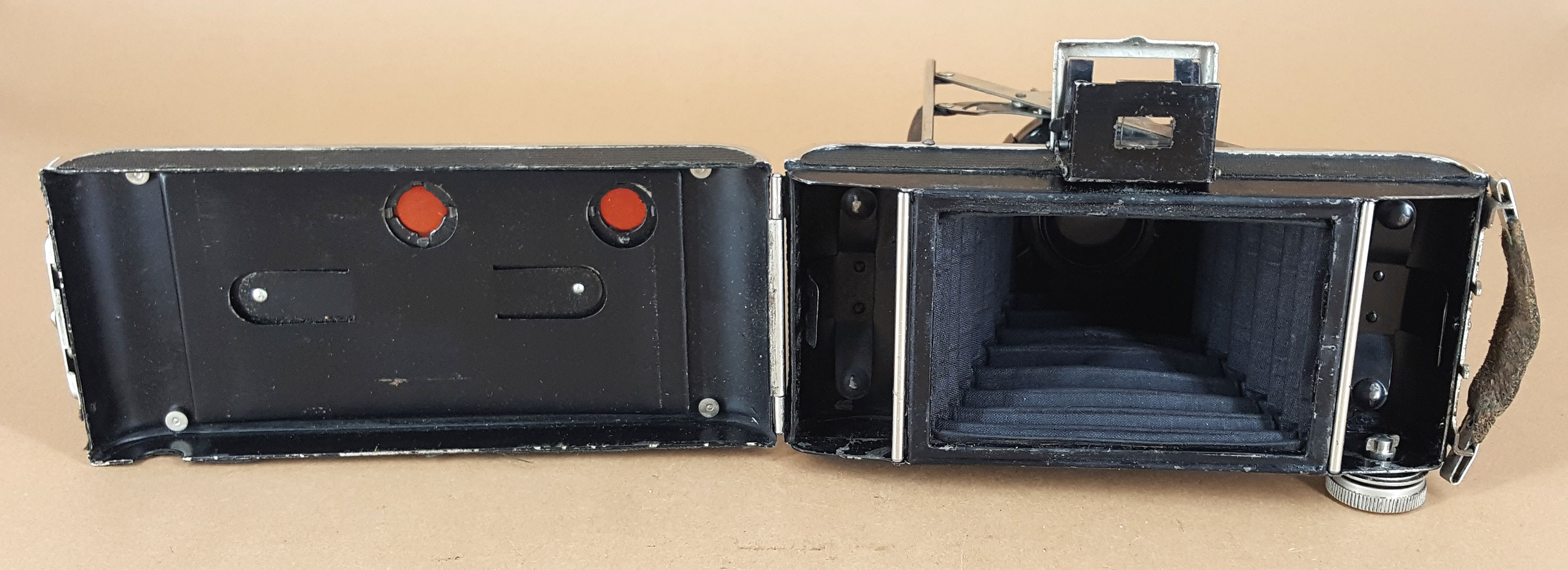Was ich sonst noch an keiner Kamera gesehen habe: Bei meiner Bing Werke AG „Fita“ –Camera 5x8 befinden sich an einigen Stellen kleine Blech-Nasen, die zur Montage umgebogen wurden und das Blech zusammenhielten. Das kenne ich sonst nur von altem Blechspielzeug. Das spricht also bei der „Fita“ zumindest dafür, dass möglicherweise seitens des Blechspielzeugherstellers Stefan Bing diese einfache Bauweise mit Blechnasen in die Kameraproduktion übertragen wurde, das Gehäuse vielleicht sogar in einer der Spielzeugfabriken hergestellt wurde.