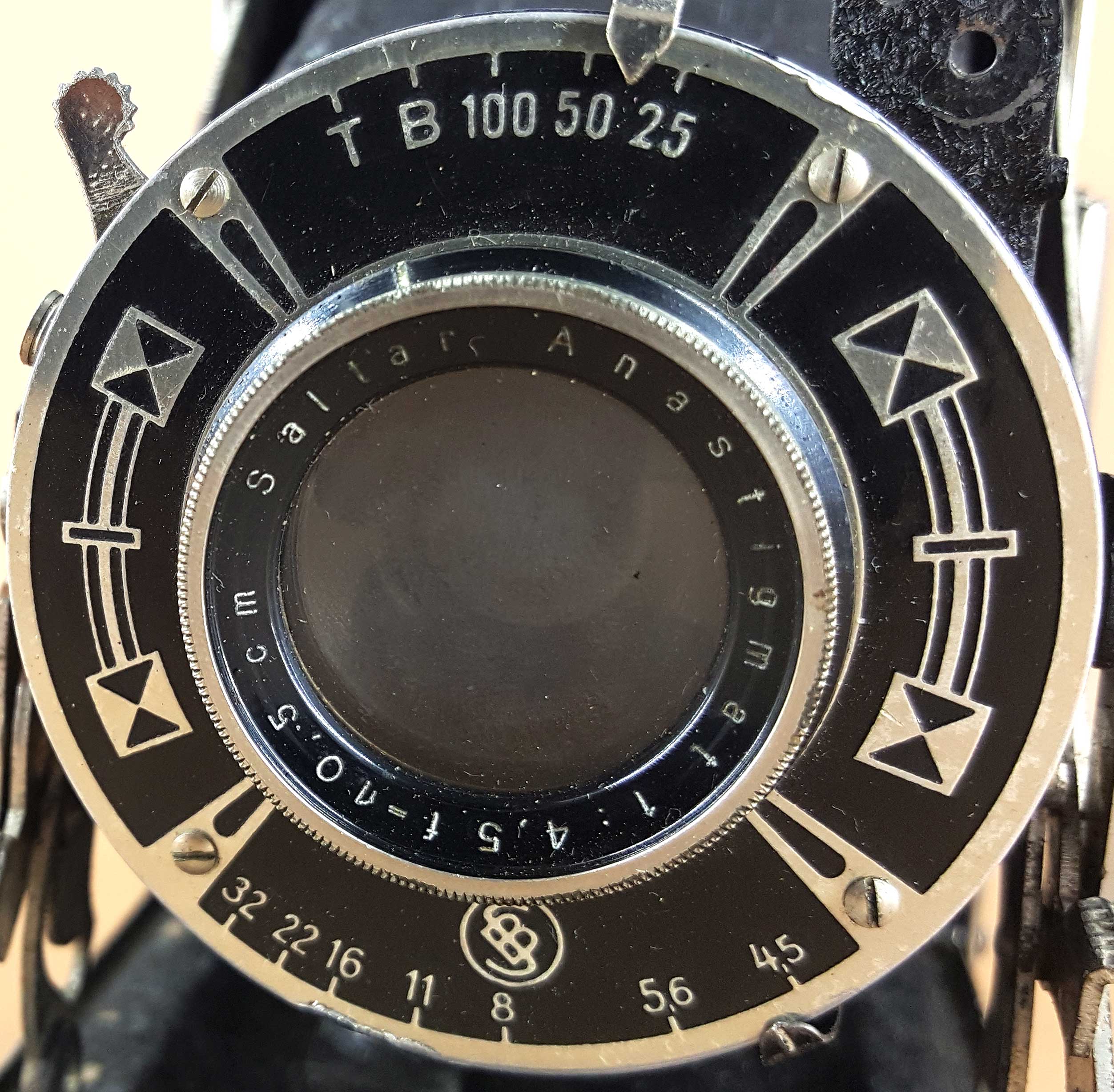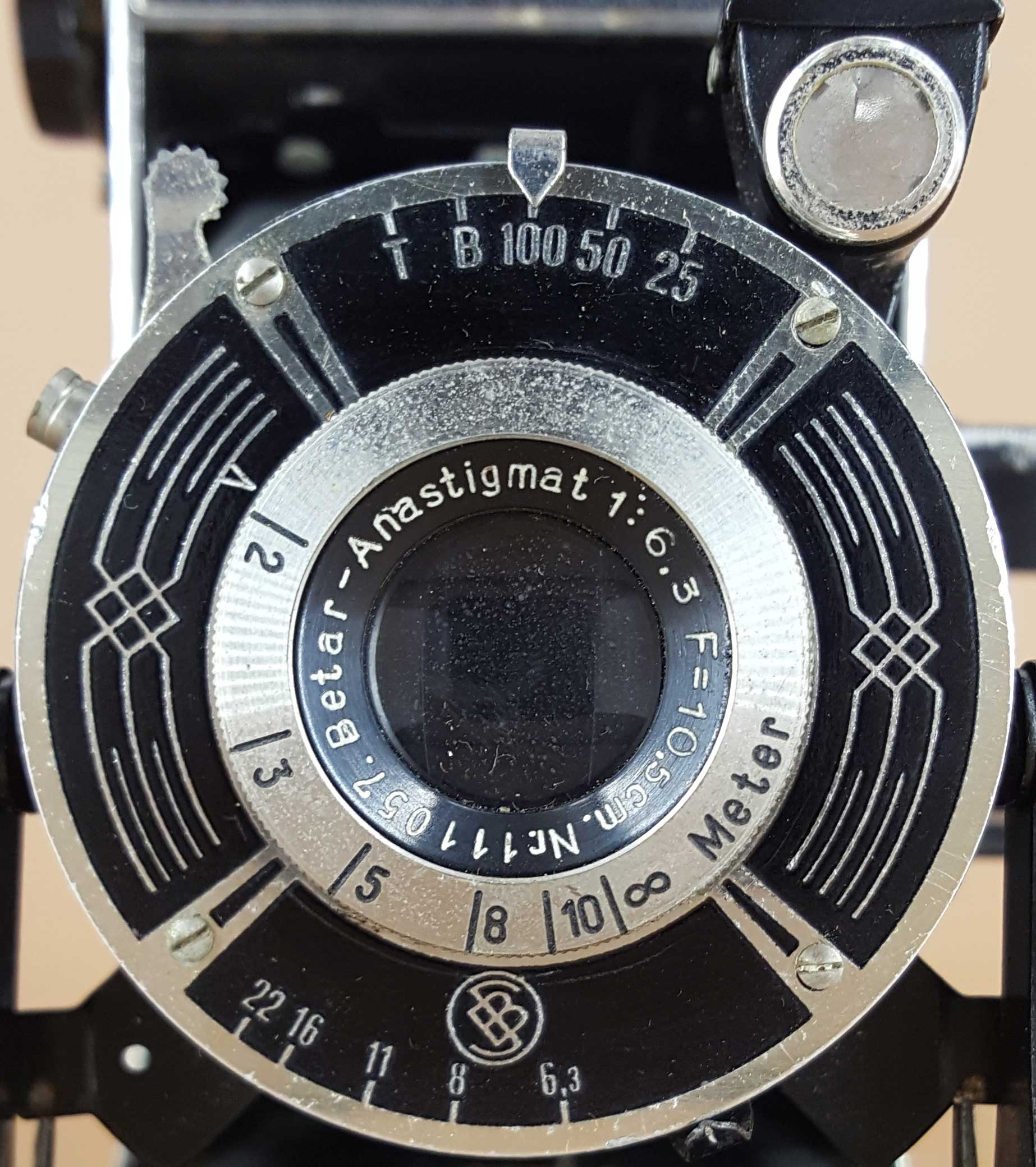 Ich könnte mir vorstellen, dass der Kamerahersteller eine Art Musterbuch vom Verschlussproduzenten bekommen hat und dann daraus auswählen konnte (100 von diesen, 50 von jenen …). Im Grunde ist es ja nur ein Stück gestaltetes Blech. Es hat aber den Anschein, dass sich diese art-déco-Verschlüsse von Stein & Binnewerg nur in der Zeit von 1935-37 finden.