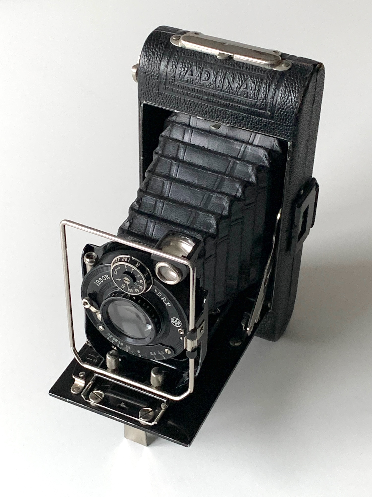 Zur Datierung: Bei anderen Herstellern (Voigtländer, Zeiss Ikon, Krauss) wurden Kameras im Format 5x8 um 1931/32 aus dem Programm gestrichen; ich vermute, dass auch die Adina nur im Zeitraum 1930–32 angeboten wurde.