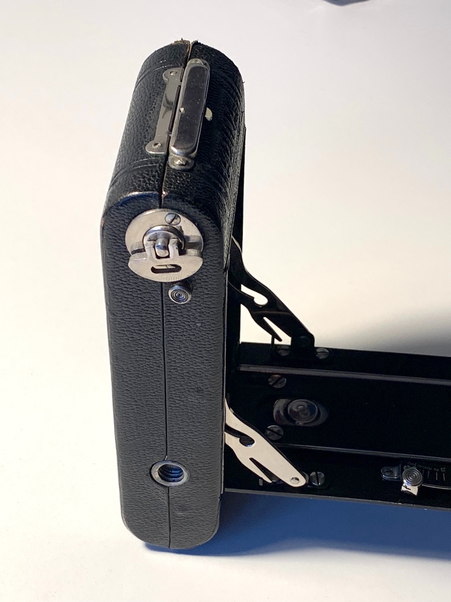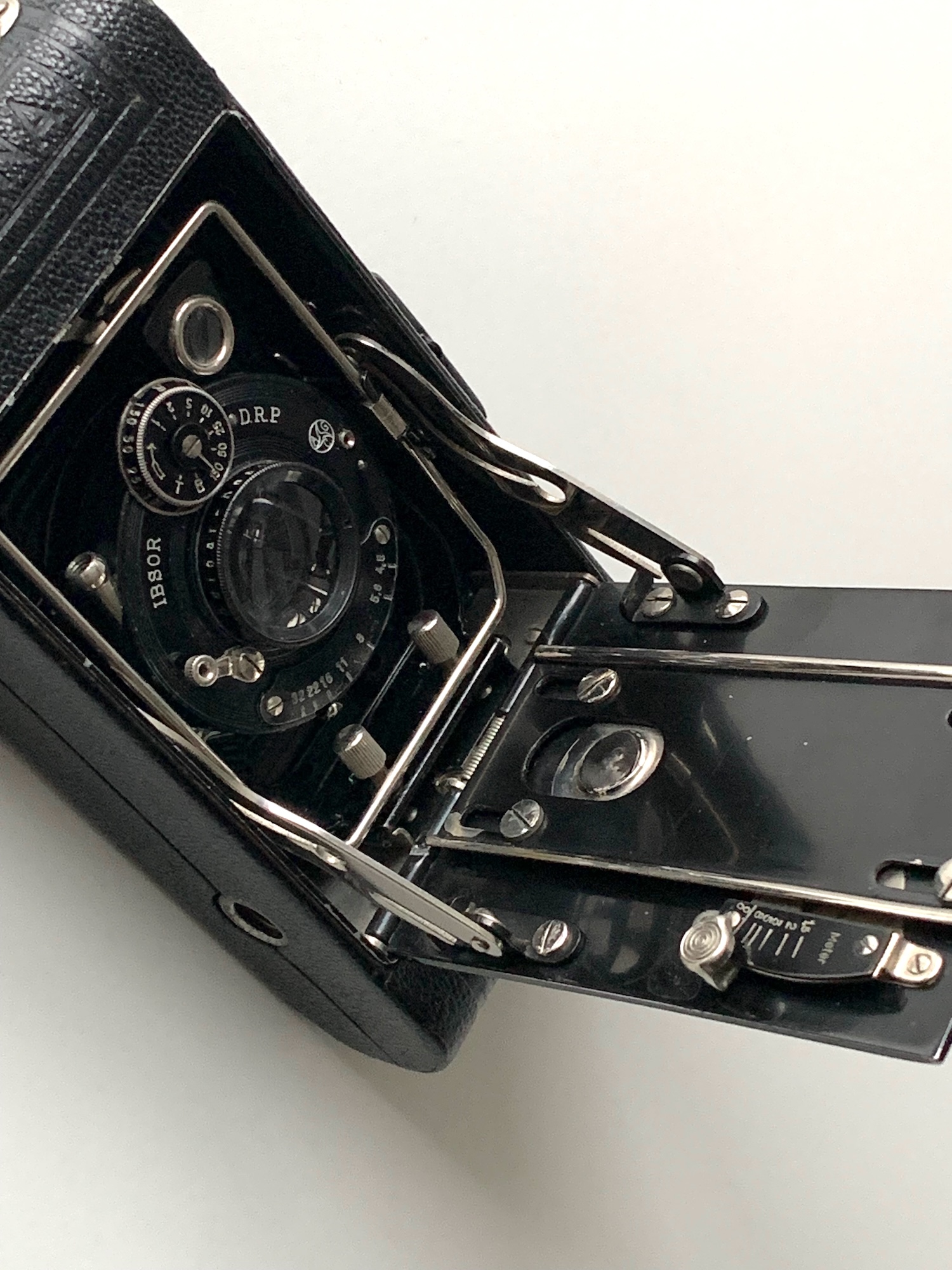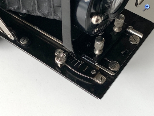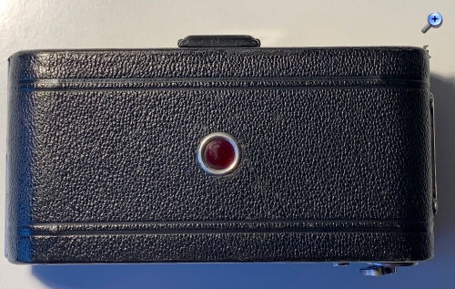 Es handelt sich um eine kleine Laufbodenkamera für den Rollfilm N-6 (Kodak-Nomenklatur: 129); sie gehört zu einer überschaubaren Gruppe von Apparaten für das (Nenn-)Format 5x8 (--> https://blende-und-zeit.sirutor-und-comp...&thread=318).