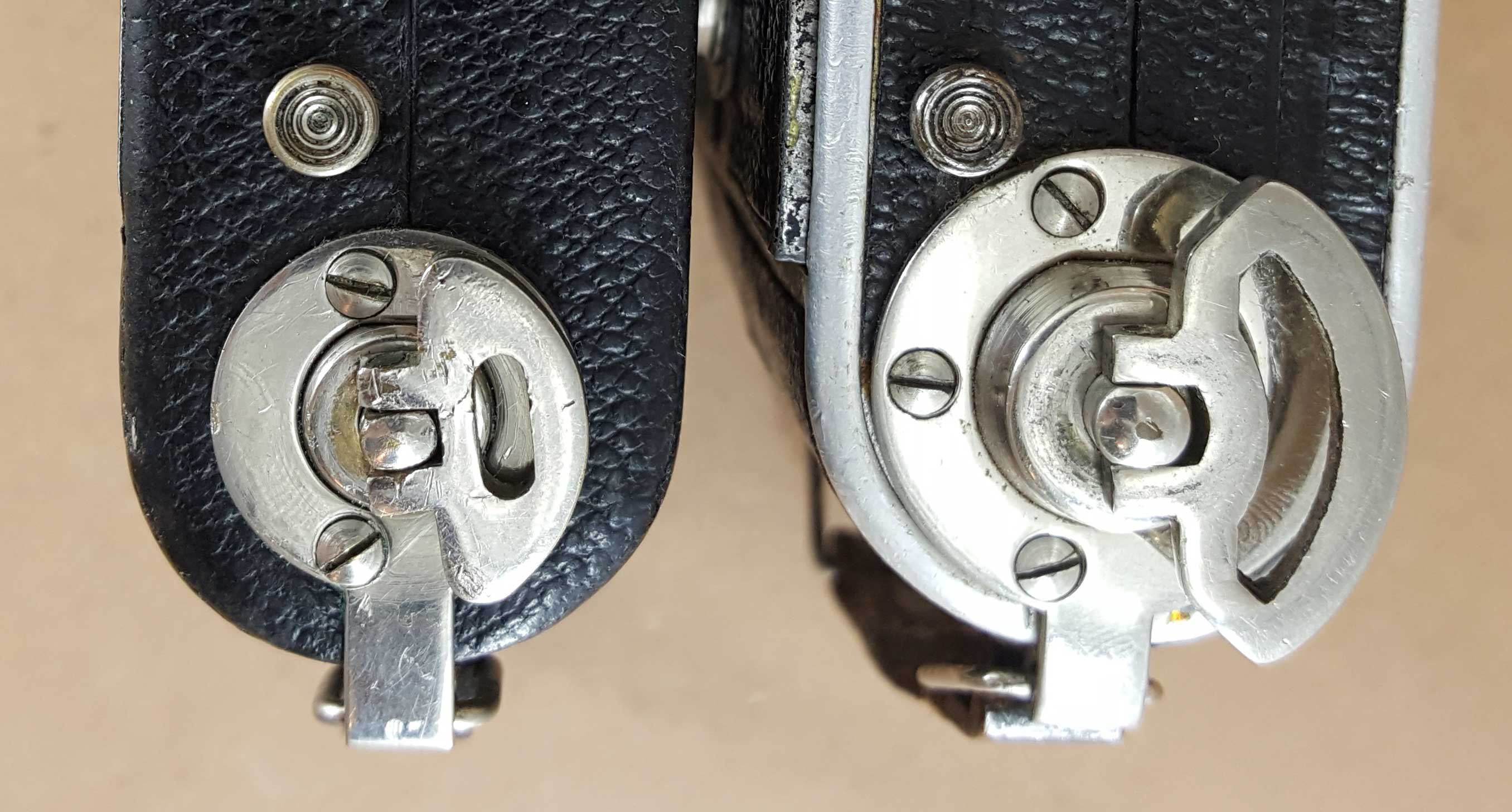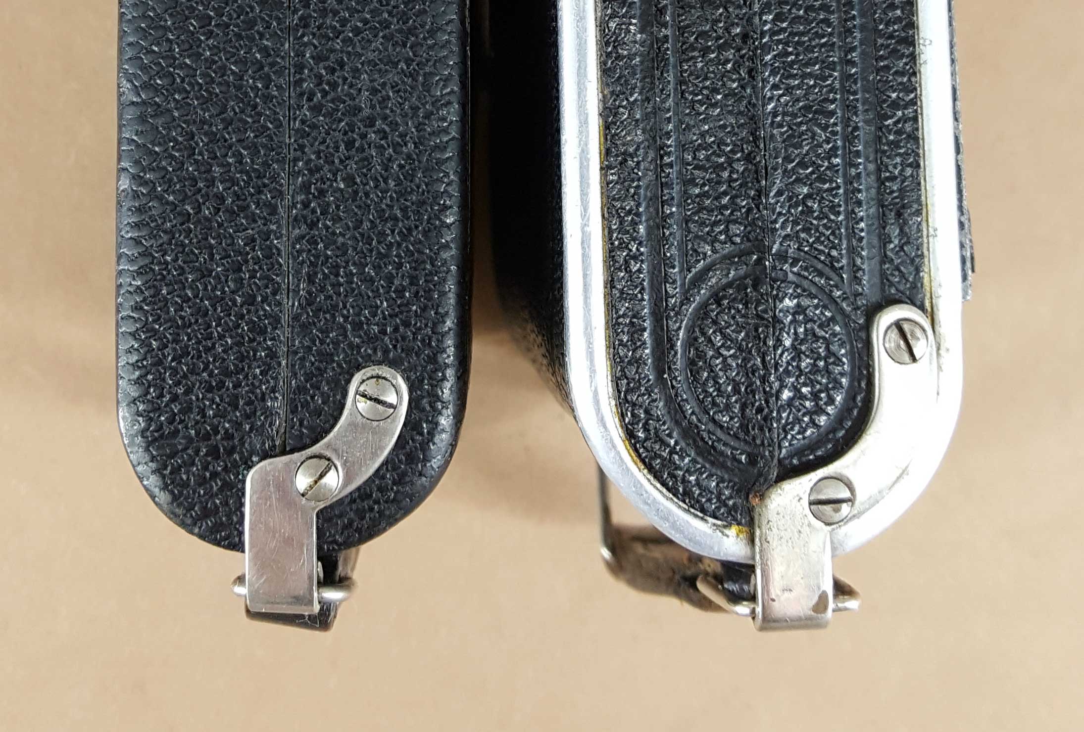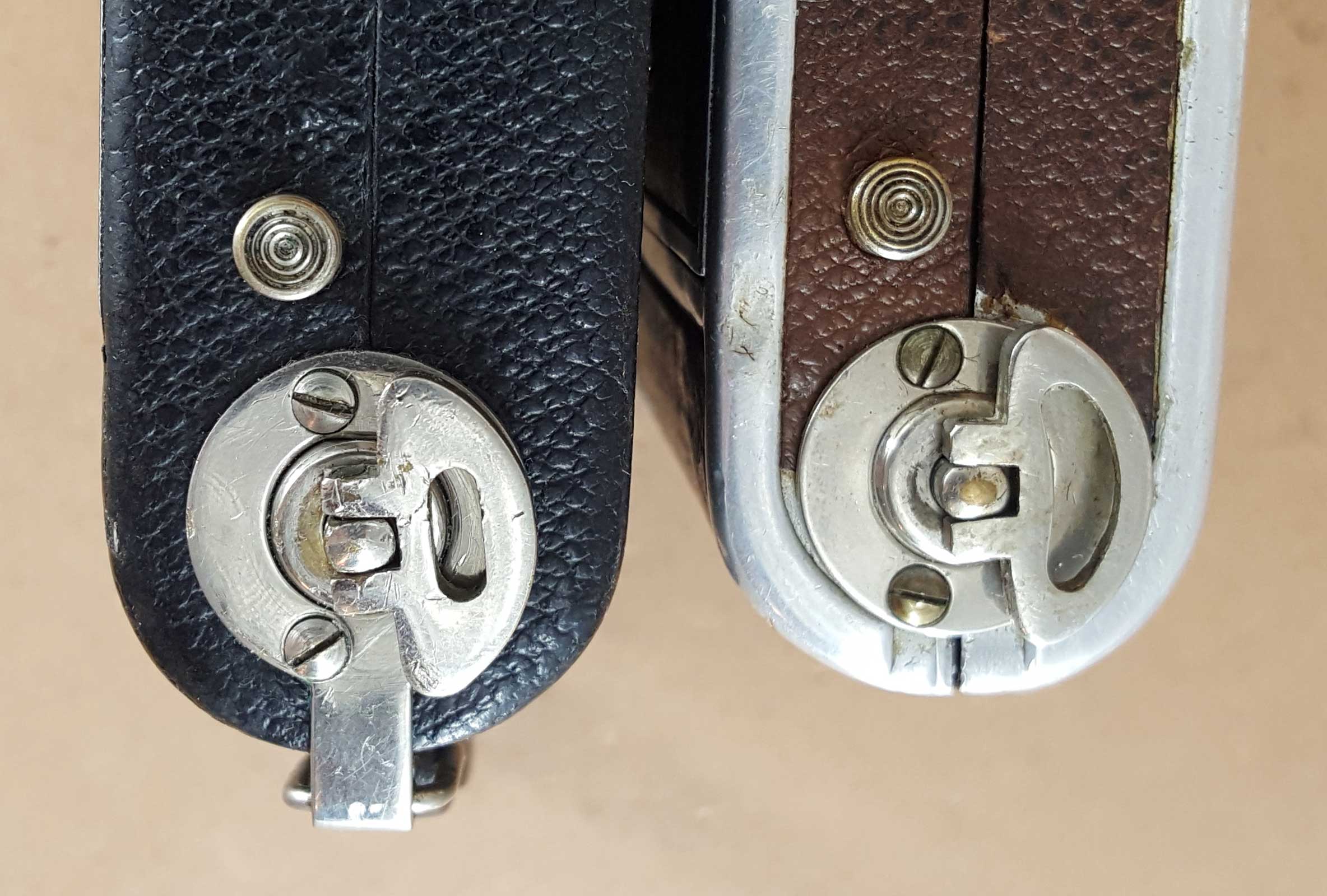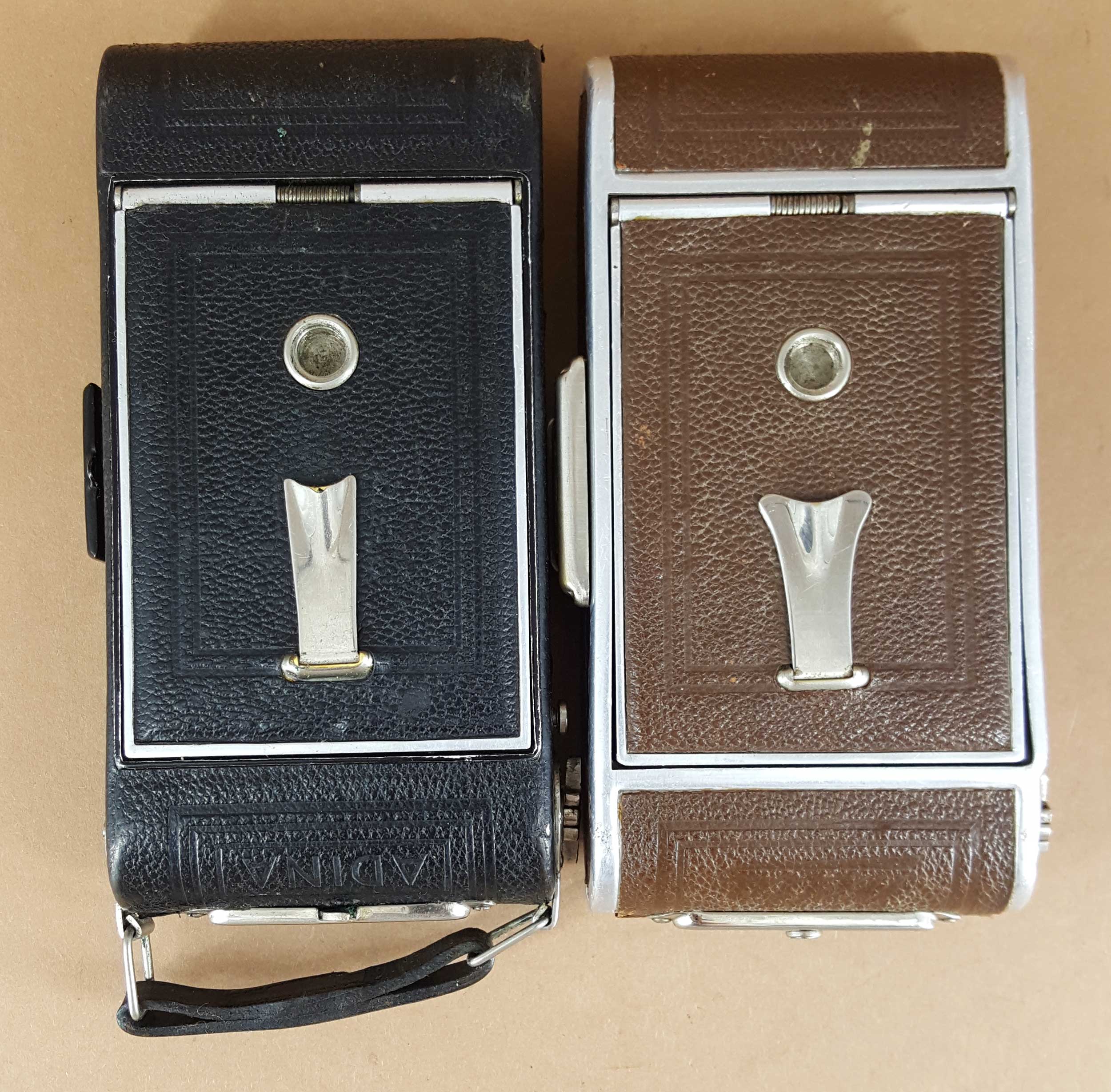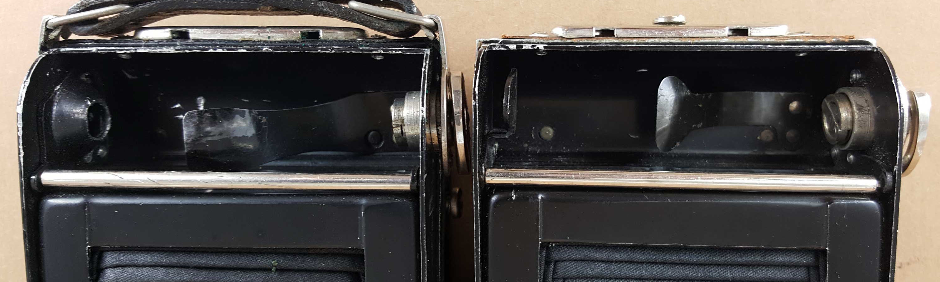 Ich habe deshalb im Folgenden mal verschiedene Welta Kameras der Adina zur Seite gestellt, um der Sache vielleicht mit Vergleichen etwas näher zu kommen. Die Adina ist dabei immer auf der Linken Seite (auch wenn das manchmal eine komische Perspektive ergibt).