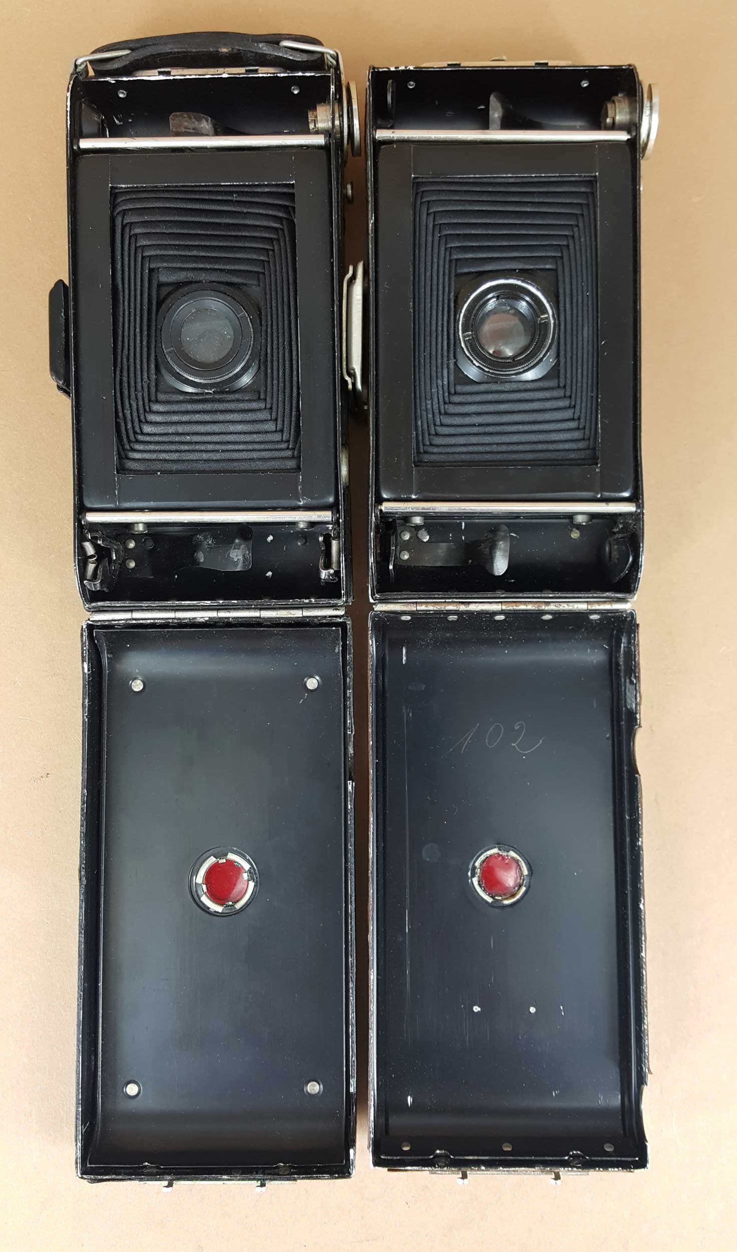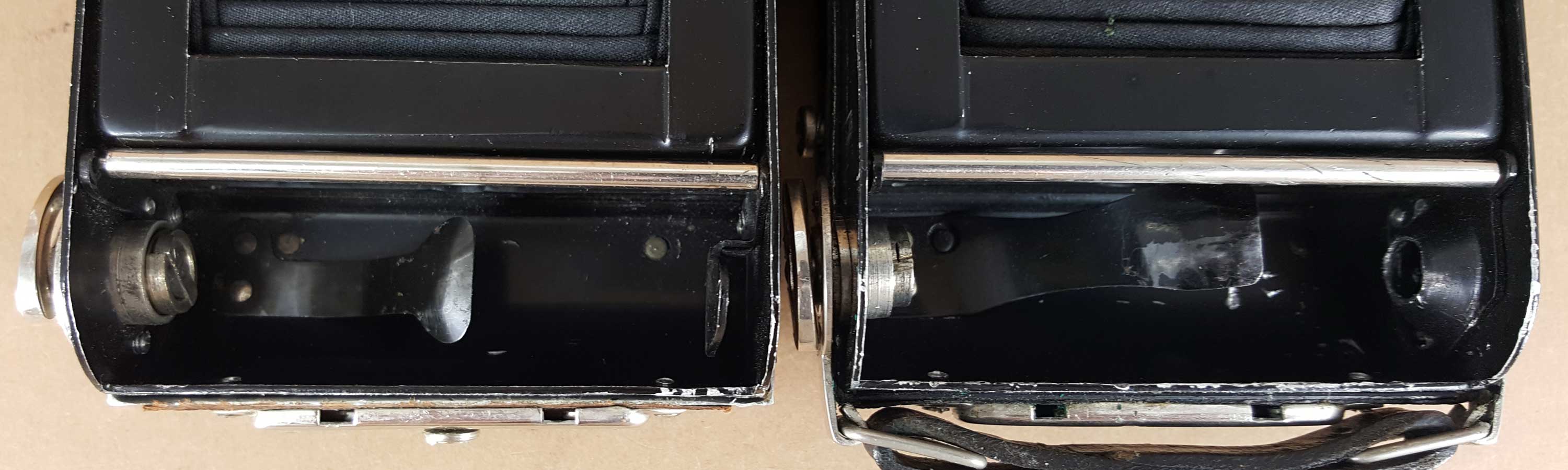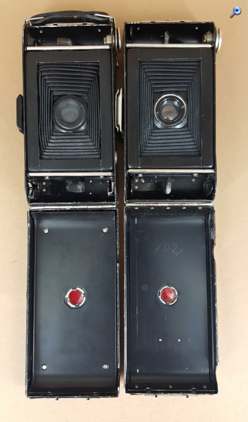 sehr eindrucksvoll – diese Übereinstimmungen in so vielen Details können kaum zufällig sein; da dürfte das Rätsel um den Hersteller gelöst sein. Interessant, dass Welta eine Laufbodenkamera in 5x8 nicht auch selbst angeboten hat; die Springkonstruktion der Perle war um 1930 offenbar moderner und sicherlich besser zu verkaufen. Bei den Mitbewerbern sind die Laufbodenmodelle (Cocarette, Rollfilm, Rollette) auch die älteren, 'unmodernen' Kameras.