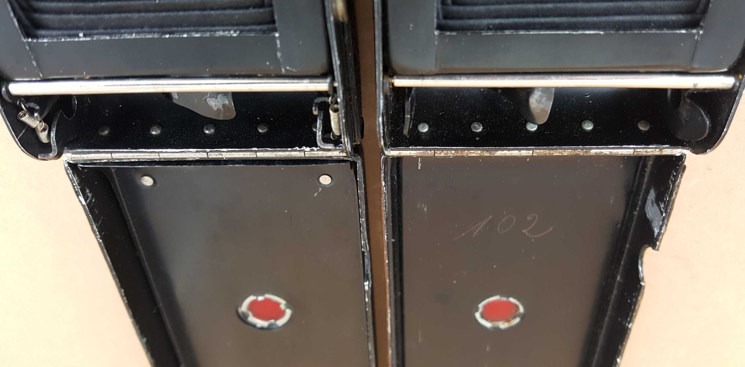 Lediglich eine Gemeinsamkeit mit einem Produkt eines anderen Herstellers habe ich entdeckt – der Rückwandverschluss hat die gleiche Form und Größe wie der bei der Welta Gucki 3x4: