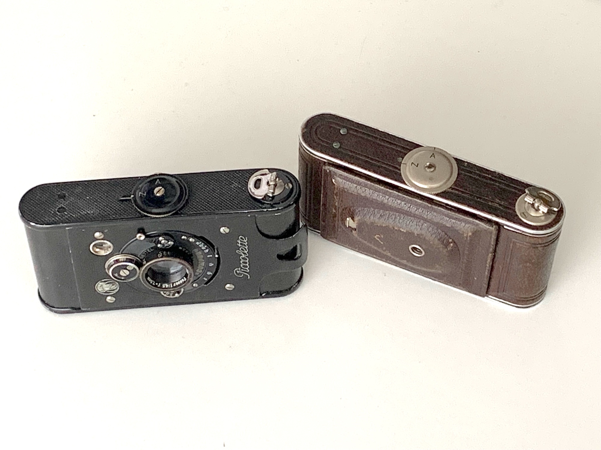die Westentaschenkamera Piccolette wurde an anderer Stelle bereits vorgestellt (--> https://blende-und-zeit.sirutor-und-comp...mp;thread=255#1). Zu Von diesem Modell brachte Contessa Nettel 1924 eine ‚Luxusversion‘ auf den Markt. Üblicherweise sind solche Luxusvarianten nur äußerlich aufgewertet – durch andersfarbige Balgen, Belederung und Beschläge. Bei der hier vorzustellenden Kamera geht die äußerliche Gestaltung mit einer Neukonstruktion einher; es handelt sich somit eigentlich um ein eigenständiges Modell.
