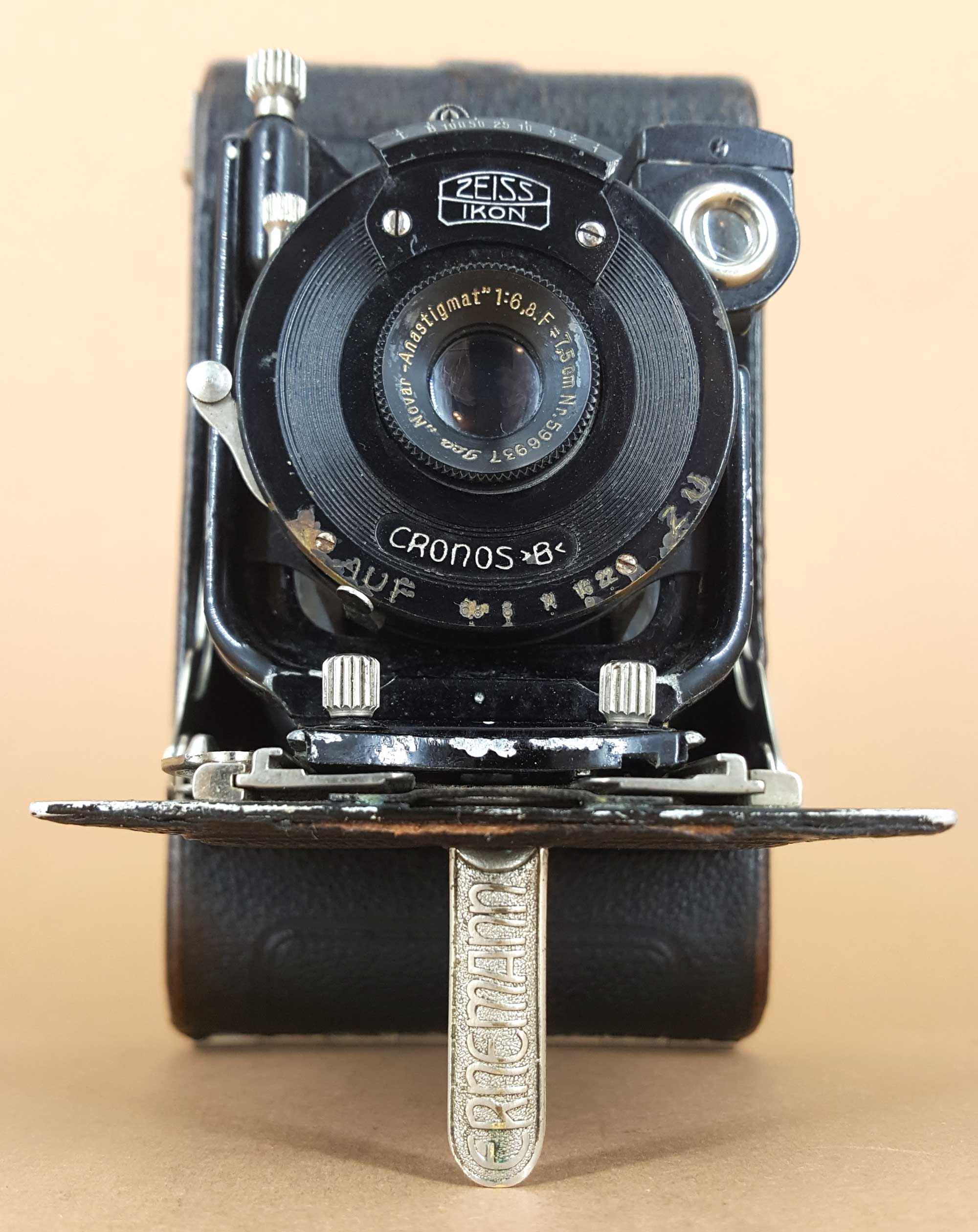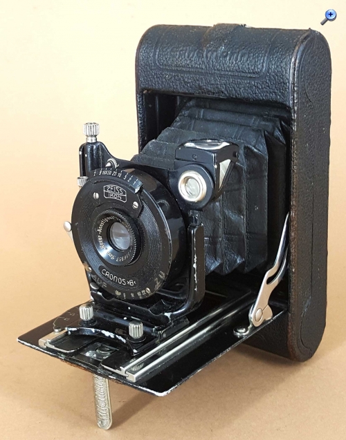 Die Bob V wurde von Ernemann 1924 vorgestellt und nach der Fusion zur Zeiss Ikon AG noch bis 1927 angeboten. Das vorliegende Exemplar ist mit dem Zeiss Ikon-Logo auf dem Verschluss versehen und es ist mit einem ICA Novar 6.8/7,5 im Cronos B-Verschluss ausgestattet. Objektiv und Zeiss Ikon-Logo weisen der Kamera eine Produktion von 1926/27 zu. Das Gehäuse der Kamera trägt die bemerkenswert niedrige Ernemann-Seriennummer 1107186, die eher eine Herstellungszeit von 1924/25 nahelegen würde.