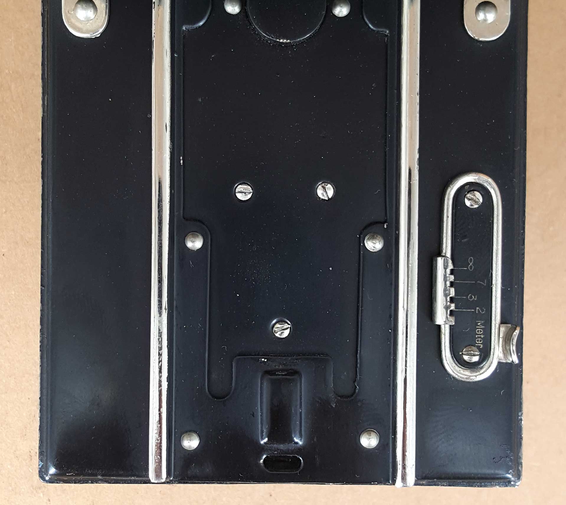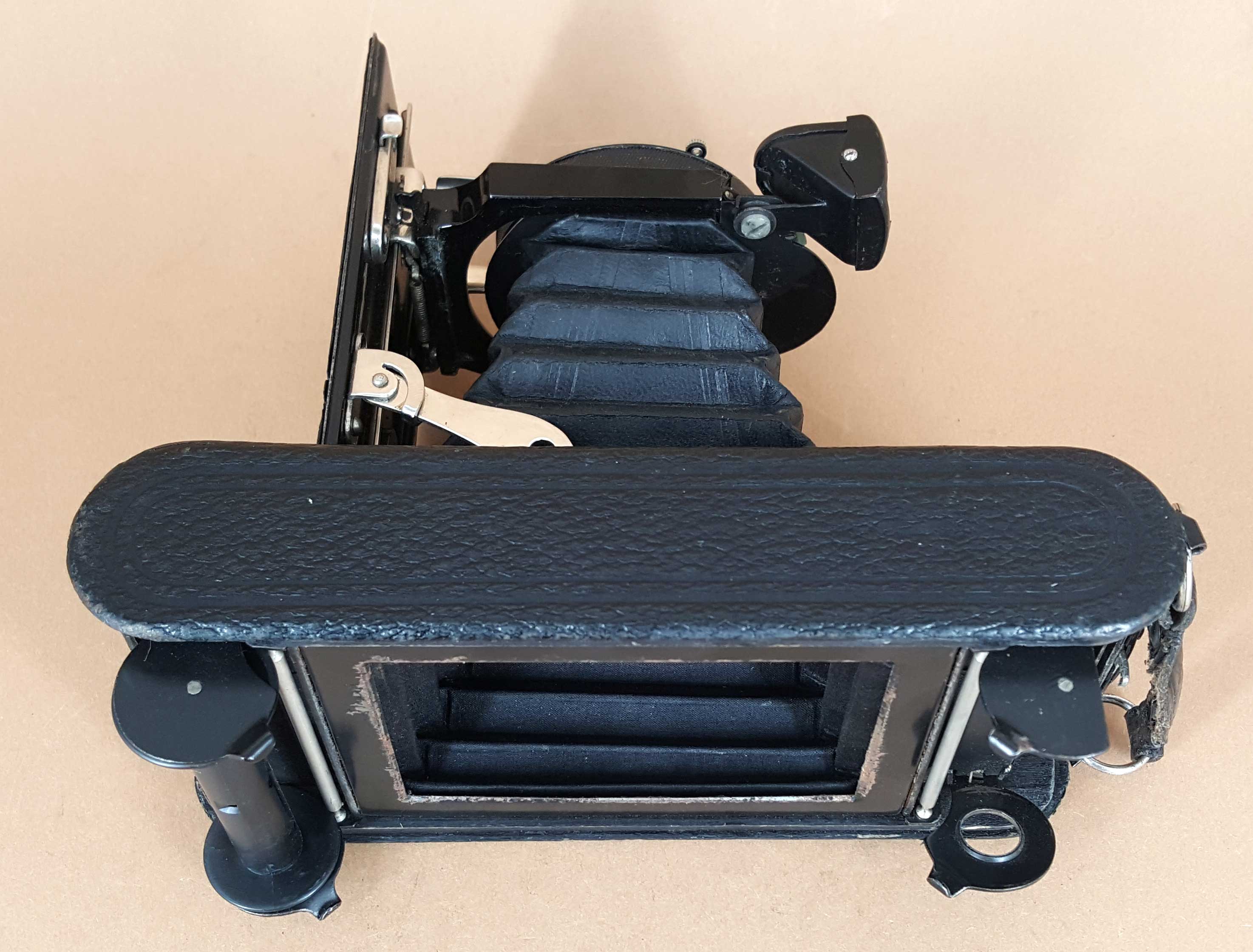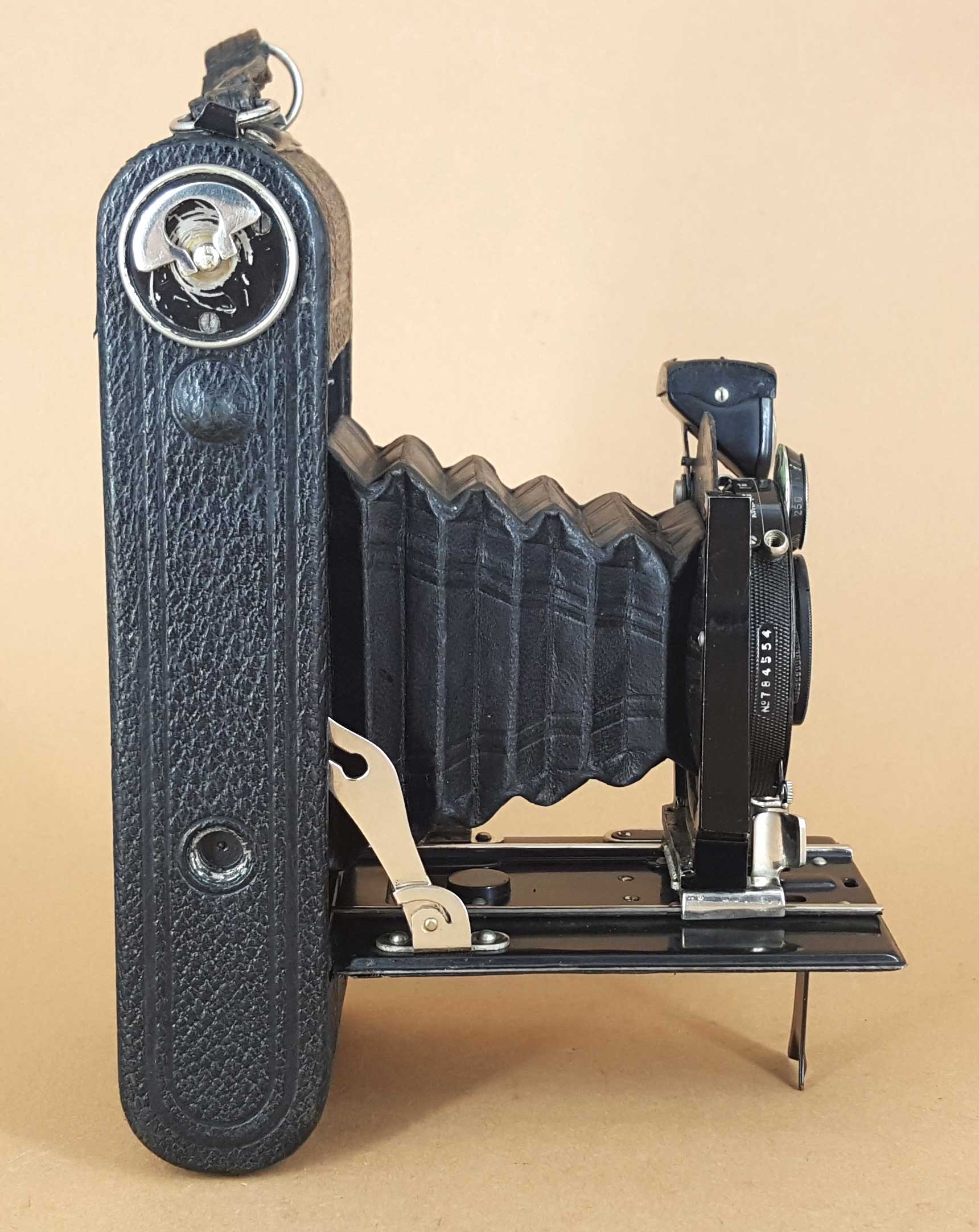Der Auszug besitzt einen Anschlag für die Unendlichstellung und zusätzlich drei Rasten für 7 m, 3 m und 2 m. Die Rückwand der Kamera ist nicht angelenkt, sondern wird komplett abgenommen. Die Spulenhalter sind ausklappbar (DR-Gebrauchsmuster), um das Filmwechseln zu erleichtern.