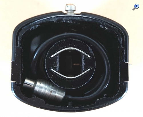 Der Reflektor wird zum Transport ins Gehäuse geschoben und für das Kabel ist ebenfalls ein Aufwickelplatz vorhanden.