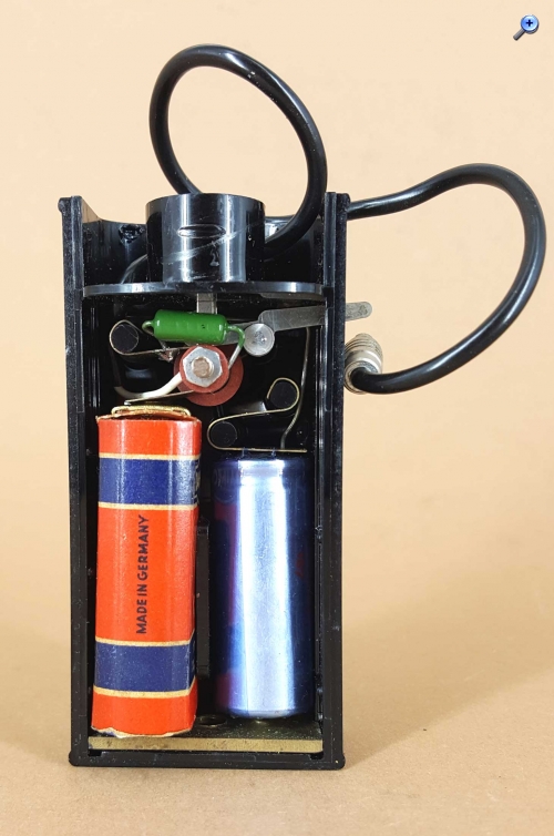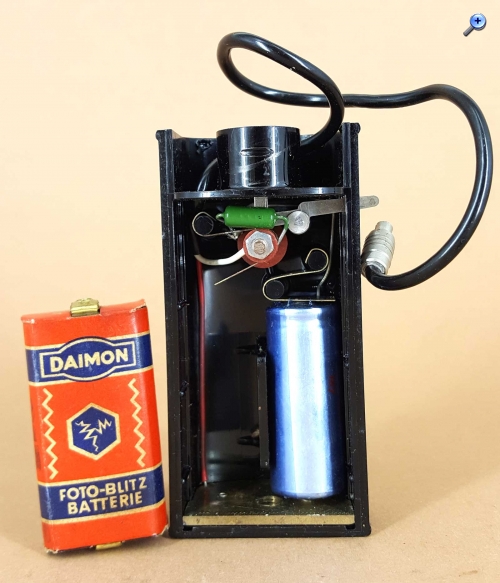 Als Batterie kam eine „Daimon Foto-Blitz Batterie“ mit 22,5 Volt zum Einsatz. Auch wenn die Batterie bisher keinen sichtbaren Schaden am Gerät verursacht hat, habe ich sie sicherheitshalber nicht wieder eingebaut.