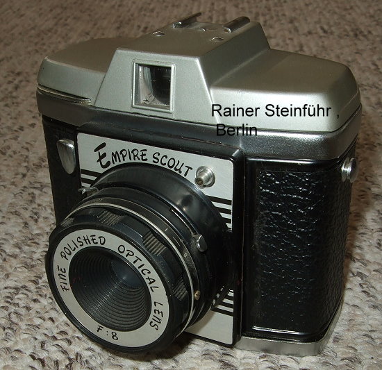 Liefert sogar ganz brauchbare Schwarz-Weiß-Photos. Der Hersteller steht noch nicht fest. Ist es Empire? Oder ist der Modellame Empire Scout oder nur Scout. Das Baujahr ist ebenfalls noch unklar.