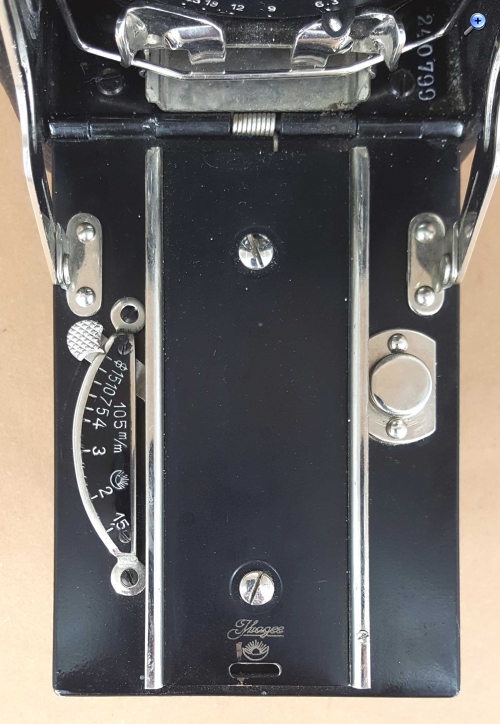 Laufboden der Ultrix Nr. 1460 mit Radialhebel (in der rechten oberen Ecke die Seriennummer)