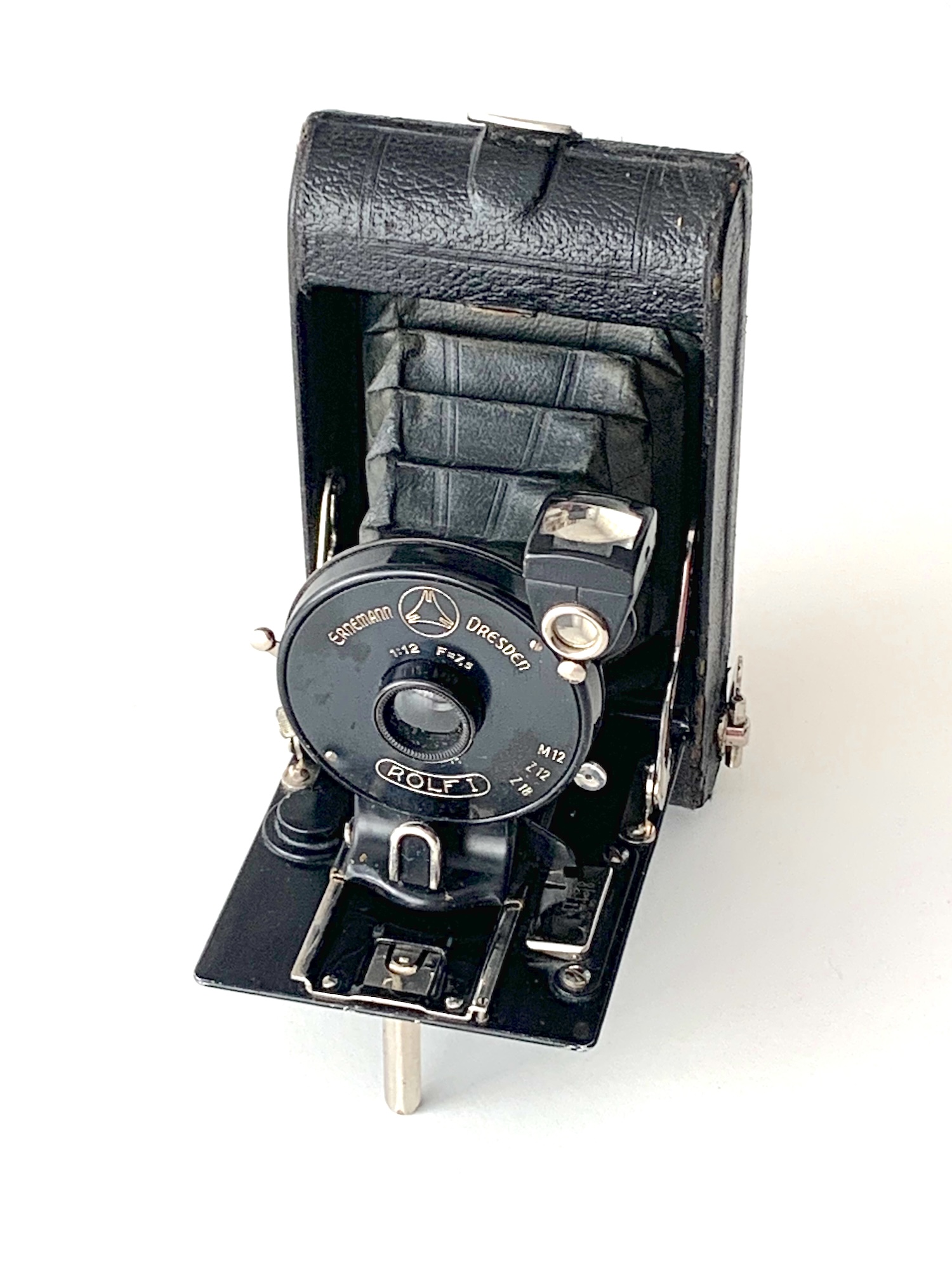 bei der Ernemann Rolf I handelt es sich um eine sehr einfach ausgestattete Westentaschen-Rollfilmkamera für das Format 4x6,5.