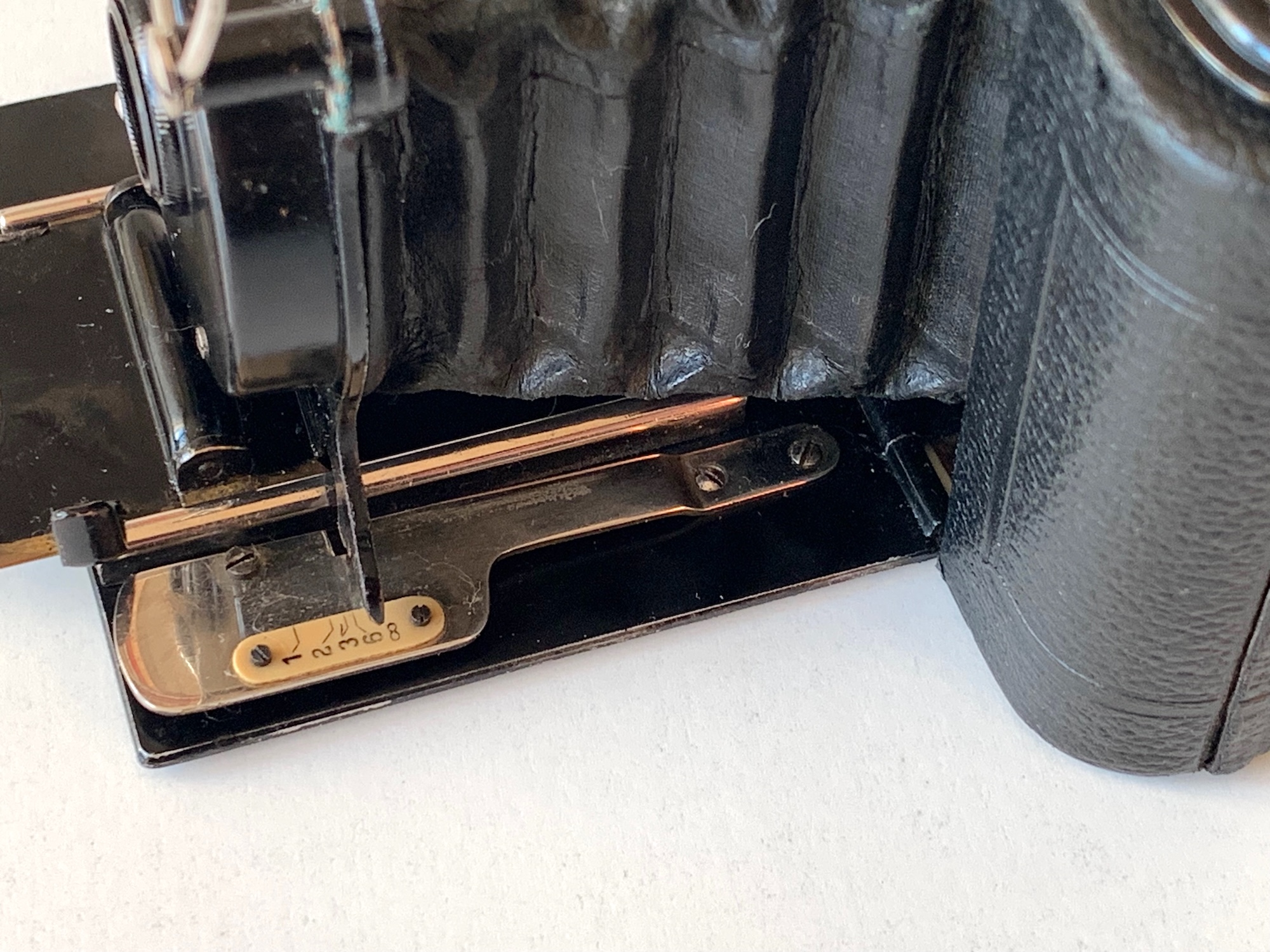 Der Balgen besteht nicht aus Leder, sondern aus Kaliko. Die Standarte ist nicht verstellbar, die Schlittenführung ist mechanisch einfacher ausgeführt als bei der Icarette. Die Handhaben sind als einfache Blechlaschen ausgeführt (beim vorliegenden Exemplar ist eine leider abgebrochen). Auf die rechte Spreize wurde – offenbar aus Kostengründen – verzichtet, was der Stabilität nicht unbedingt zugute kommt. Auch der Brillantsucher wurde eingespart. Auffällig ist die Befestigung des Sucherrahmens an der Stelle, die sonst dem Brillantsucher vorbehalten ist. Immerhin: Das ausziehbare Visier des Ikonometers fungiert wie bei der Icarette 6x6 zugleich als Rotfensterverschluss, das ist das einzige ‚Extra‘ bei dieser Kamera.