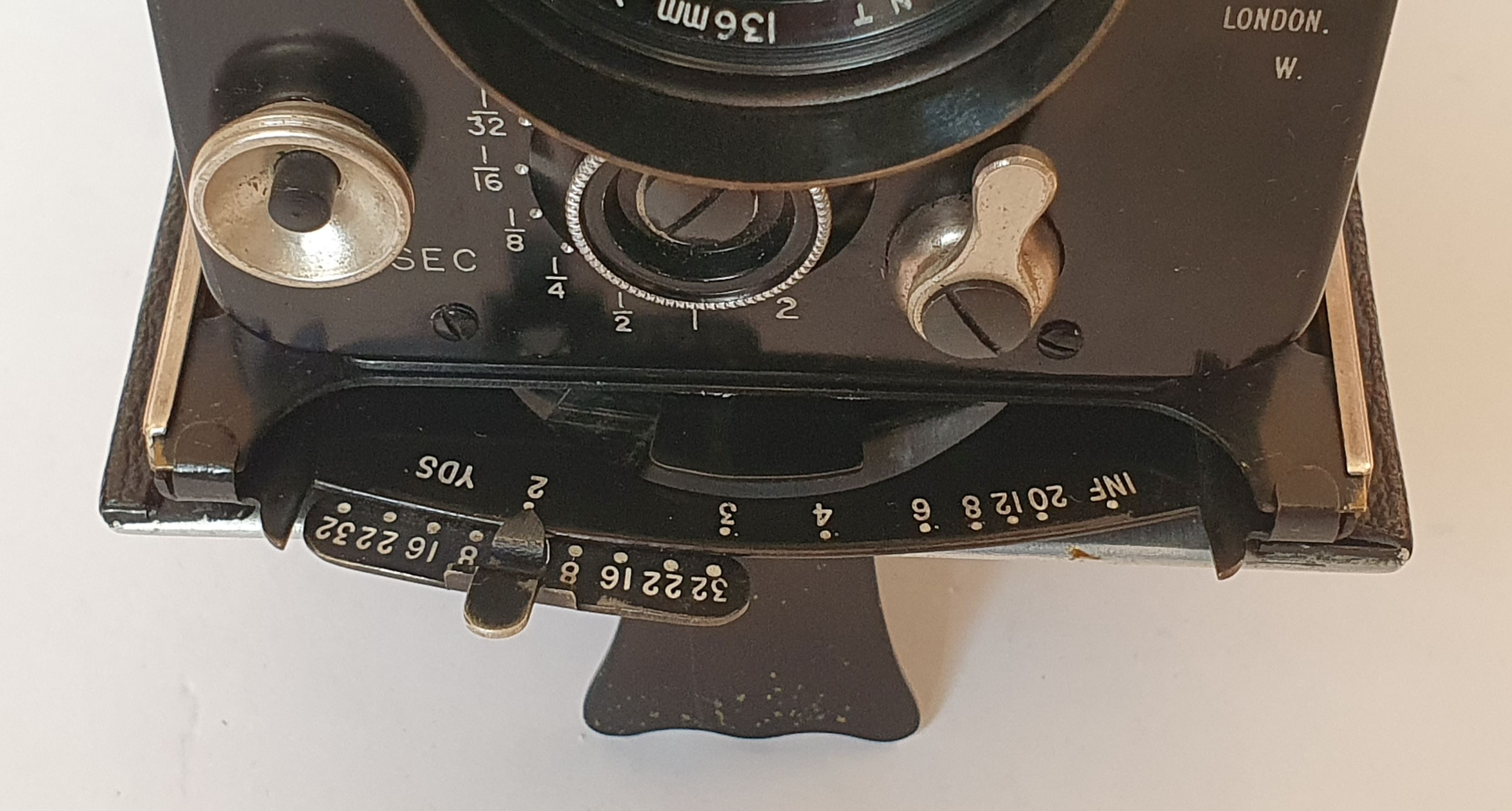 Beim Öffnen der Rückwand (genauer der linken Seite) heben sich die Ladespulenhalter aus dem Kamerainnenraum heraus, sodass man den Rollfilm spielend leicht einlegen kann. Der Film wird durch eine zweigeteilte Andruckpatte auf die Filmbühne gedrückt. Das Filmnummernsichtfenster der Rückwand lässt sich verschließen. Das sind alles ziemlich fortschrittliche Details für den Produktionszeitraum, die die meisten Deutschen Kameras zu diesem Zeitpunkt noch nicht aufwiesen (Andruckplatte, verschließbares Filmnummernfenster). Der Preis betrug 32,10 £ (entsprechen ca. 2.000 £ heute und damit 2.400 € in 2025). Was damals vermutlich ein kleines Vermögen war.