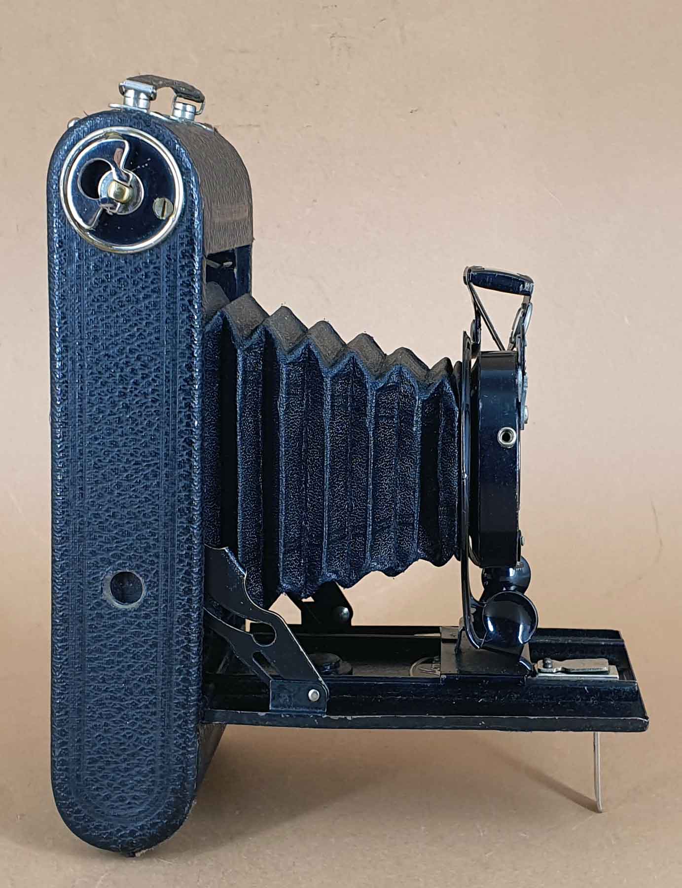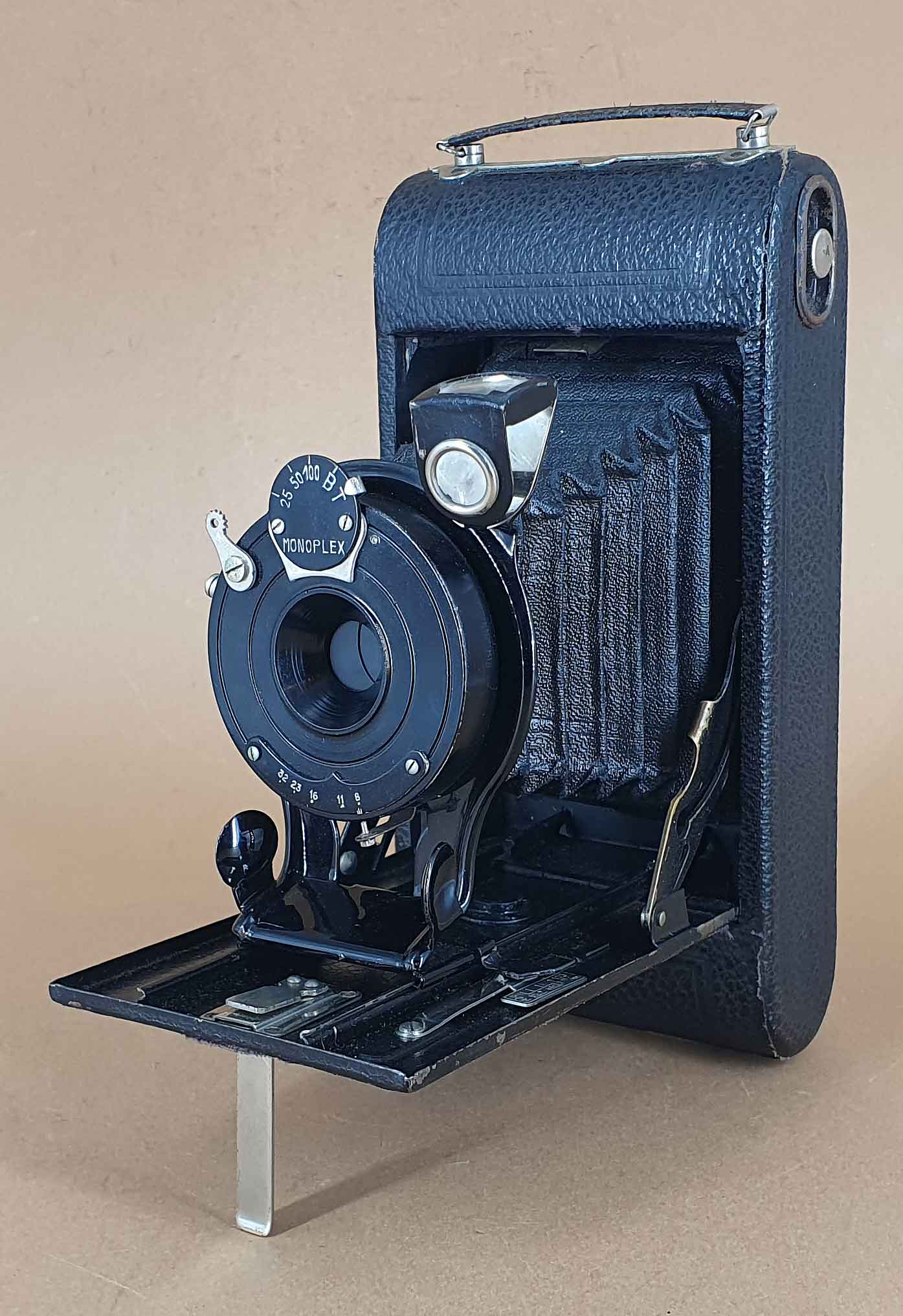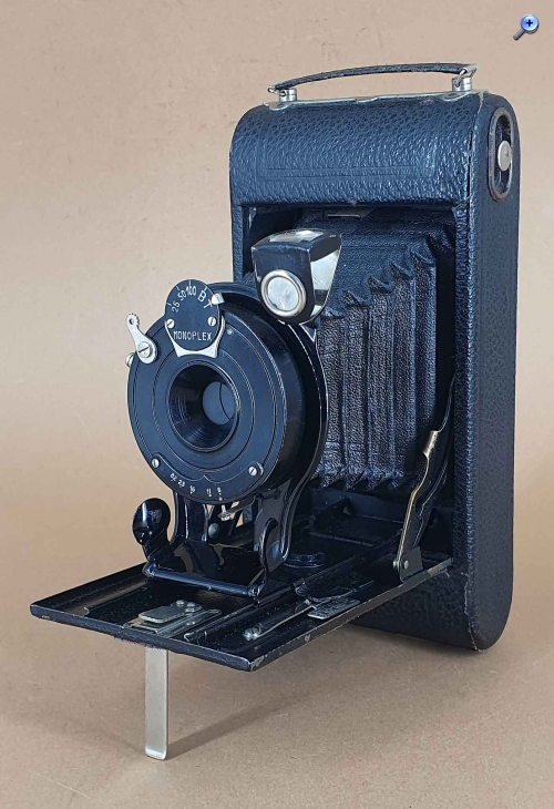 auch ich finde nirgends eine MONO mit Namen Bonaplex daher gehen meine Gedanken in Richtung Monoplex-Verschluss. da lt. meinen Unterlagen Mono nur wenig Rollfilmkameras im Angebot hatte zähle ich mal die Falt Rollfilmmodelle auf. Automat RF/PL. 5 x 8 1930 Verschl mit Spezial angegeben