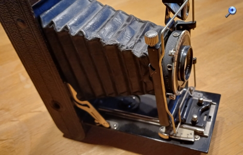 Es handelt sich wahrscheinlich um eine Icarette 502/1 (512/15) für das 6,5x11-cm-Format. Das Objektiv mit dem Verschluss ist vermutlich nicht original. Nach dem Öffnen der Rückwand ist die Seriennummer sichtbar, die mit einem Buchstaben beginnt. Wenn Sie mir diese mitteilen, kann ich das Herstellungsjahr bestimmen.