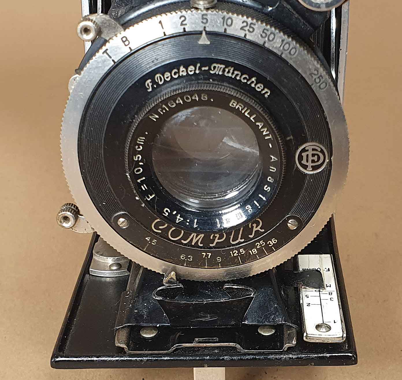 Im oben zitierten Pressetext wird die Kamera mit den Attributen „kompendiöse Form“ und „sehr präzise Ausführung“ charakterisiert. Dieser zeitgenössischen Meinung möchte ich mich nicht anschließen, es ist im Gegenteil eine sehr einfache und eher ‚billig wirkende‘ Kamera. Wie schon erwähnt, erfolgt das Fokussieren durch einfache Verschiebung der Standarte auf dem Laufboden. Diese Konstruktion ist jedoch bei meinen drei Exemplaren so leichtgängig, dass man den Schlitten mit dem Finger festhalten muss, um die Standarte in der gewählten Entfernungseinstellung zu fixieren. Die ungünstige Positionierung und Form der Handhaben erschwert die Bedienung der Blendeneinstellung erheblich und beim Exemplar mit dem Compur-Verschluss ist die Einstellung der Blende nur unter Zuhilfenahme eines schmalen Werkzeugs möglich.