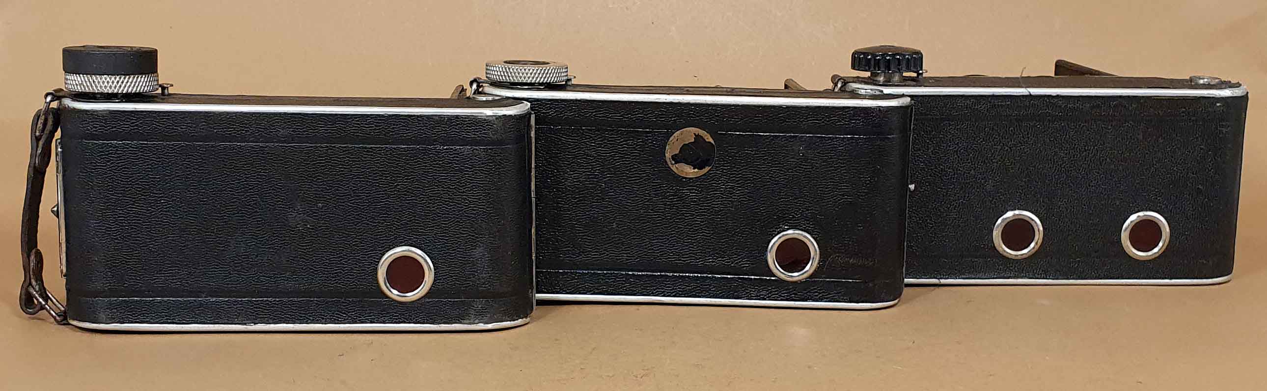 Meine drei Exemplare diese Kameramodells sind mir vor zwei Jahren innerhalb eines Monats in die Fänge geraten. Davor ist mir die Kamera nicht aufgefallen und danach habe ich sie auch nicht wieder gesehen. Es scheint also ein eher seltenes Modell zu sein. Die drei Kameras sind im Übrigen alle nicht perfekt erhalten, teilweise fehlen Teile und teilweise wurden sie modifiziert. Hier die Bestückung der drei Kameras: