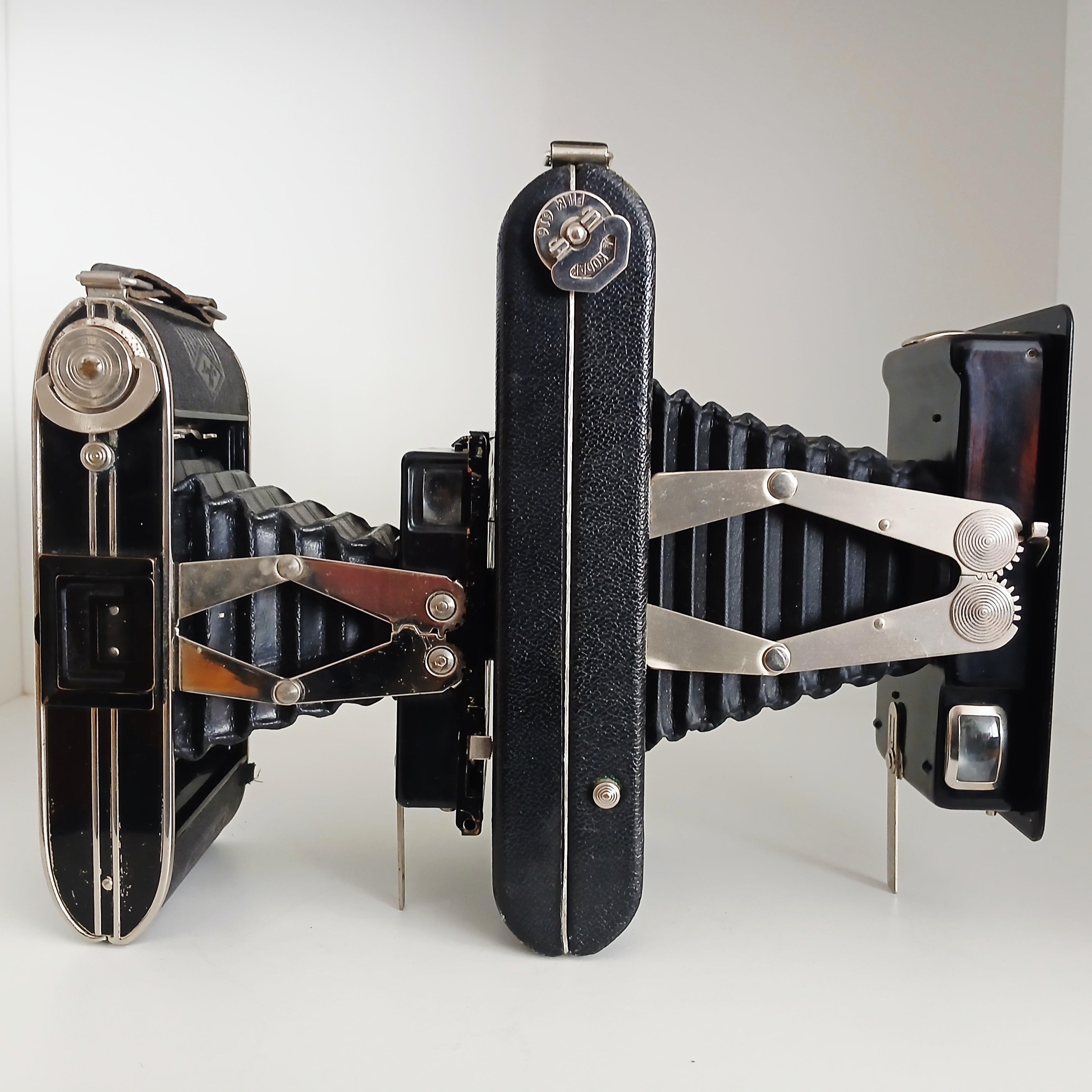 und die oft sehr sammel würdig und geschätzt sind. Heute wird es kurz um eine der Kameras gehen, die als 'Inspiration oder Modell' für Agfa dienten: die Kodak Jiffy Six-20 und Six-16 (1933-1937). Die Ähnlichkeit dieser Agfa Billy Clack 51 und Billy Clack 74 Kameras mit diesen Kodak Jiffys, die ein Jahr vor den Agfa-Modellen auf den Markt kamen, ist mehr als offensichtlich und keineswegs zufällig. Agfa hat diese Kodak-Kameras auf seine eigene Weise nachgeahmt, aber auch verbessert, indem Agfa Änderungen und Verbesserungen am Design und an der Bedienbarkeit vornahm, obwohl sie technisch im Wesentlichen gleich waren. Sie waren auch erfolgreicher und langlebiger. Erinnern wir uns daran, dass in jenen Jahren Kodak und Agfa (und Agfa Ansco) wild konkurrierten und dies ist ein perfektes Beispiel dafür. Auf den Fotos Nr. 2 und Nr. 3 ist der Vergleich mit einer Kodak Jiffy Six-16 und einer Agfa Billy Clack 74 möglich.