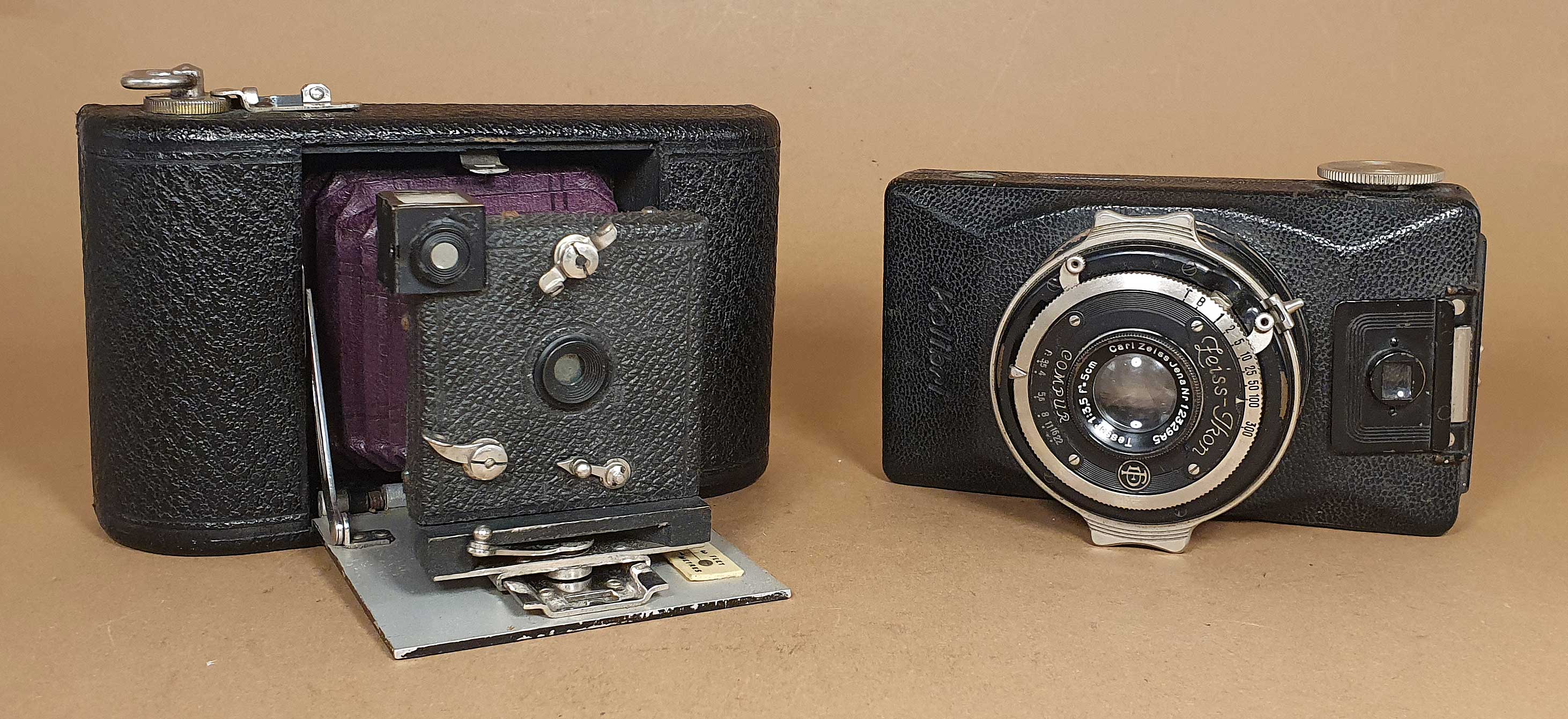 2. Wieder ein schönes Beispiel für die Willkürlichkeit oder auch Phantasielosigkeit, mit der bei Zeiss Ikon und den Vorgängern Modellnamen vergeben bzw. reanimiert wurden (Nettel, Ikonette usw.). Die spätere Kolibri 3x4 ist ja gerade nicht besonders klein... Von der Wünsche Kolibri scheint mir aber ein direkter Weg zur abgespeckten Icarette 6x6 zu führen, der Alpha 490 (https://blende-und-zeit.sirutor-und-comp...&thread=361) – ebenfalls reduziertes Gehäuse mit nur einer Spreize und sonst Minimalaussstattung.