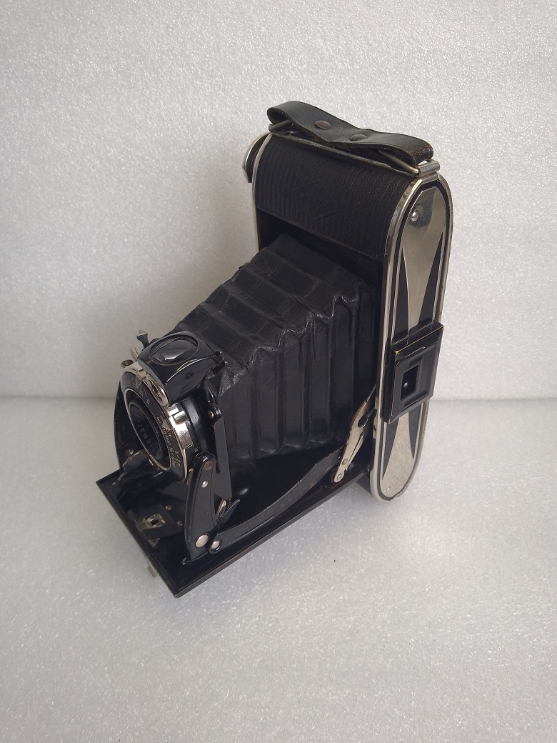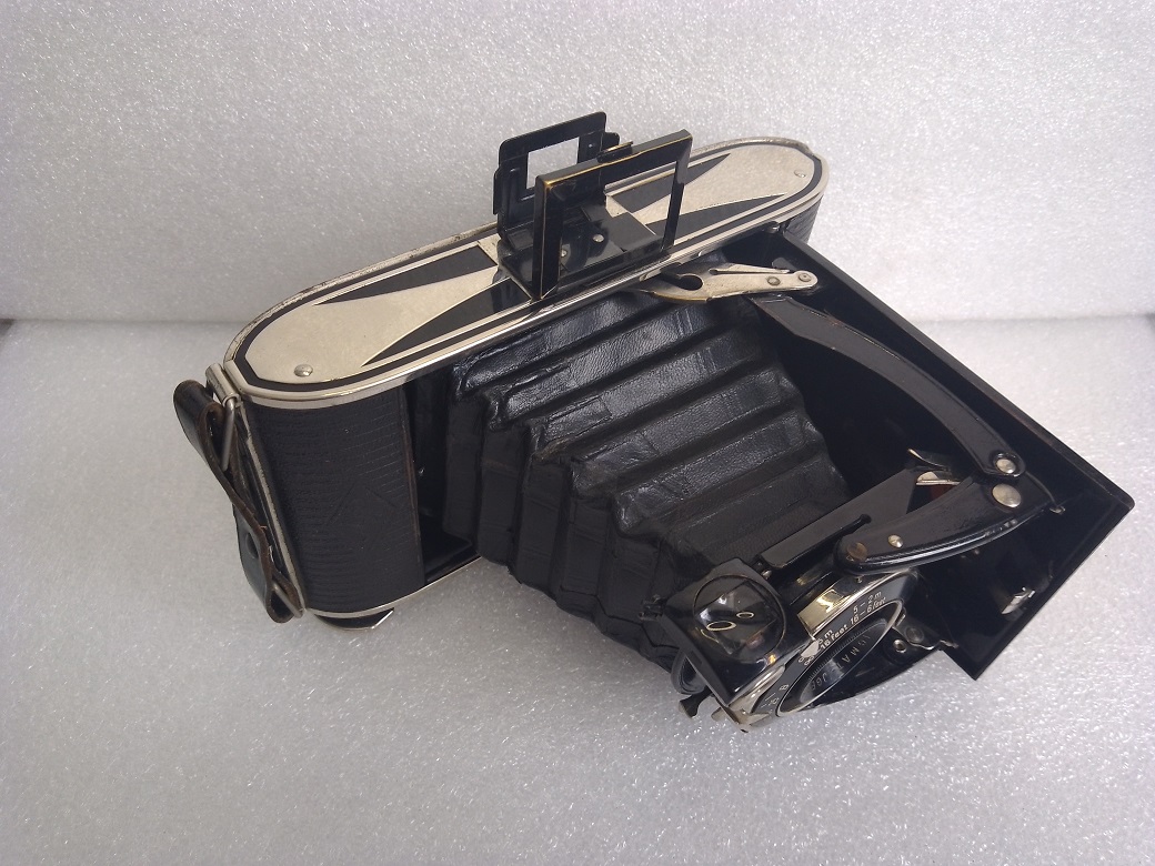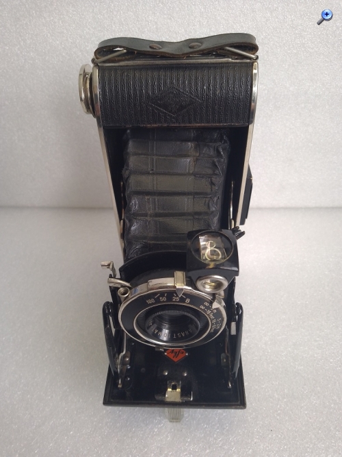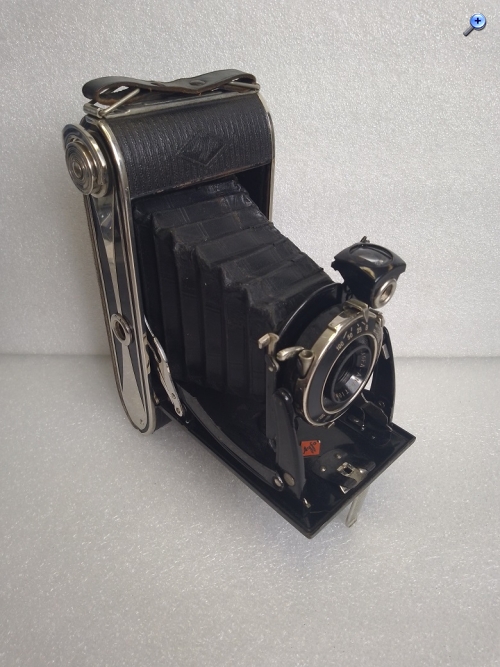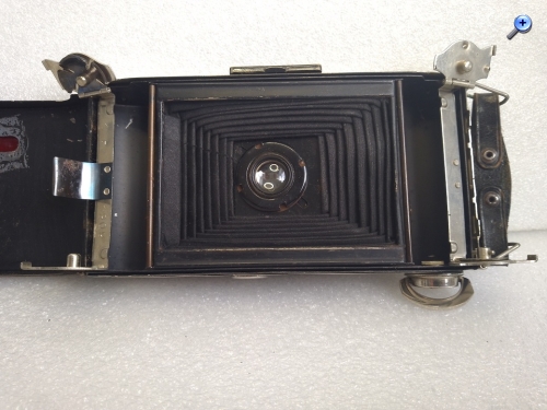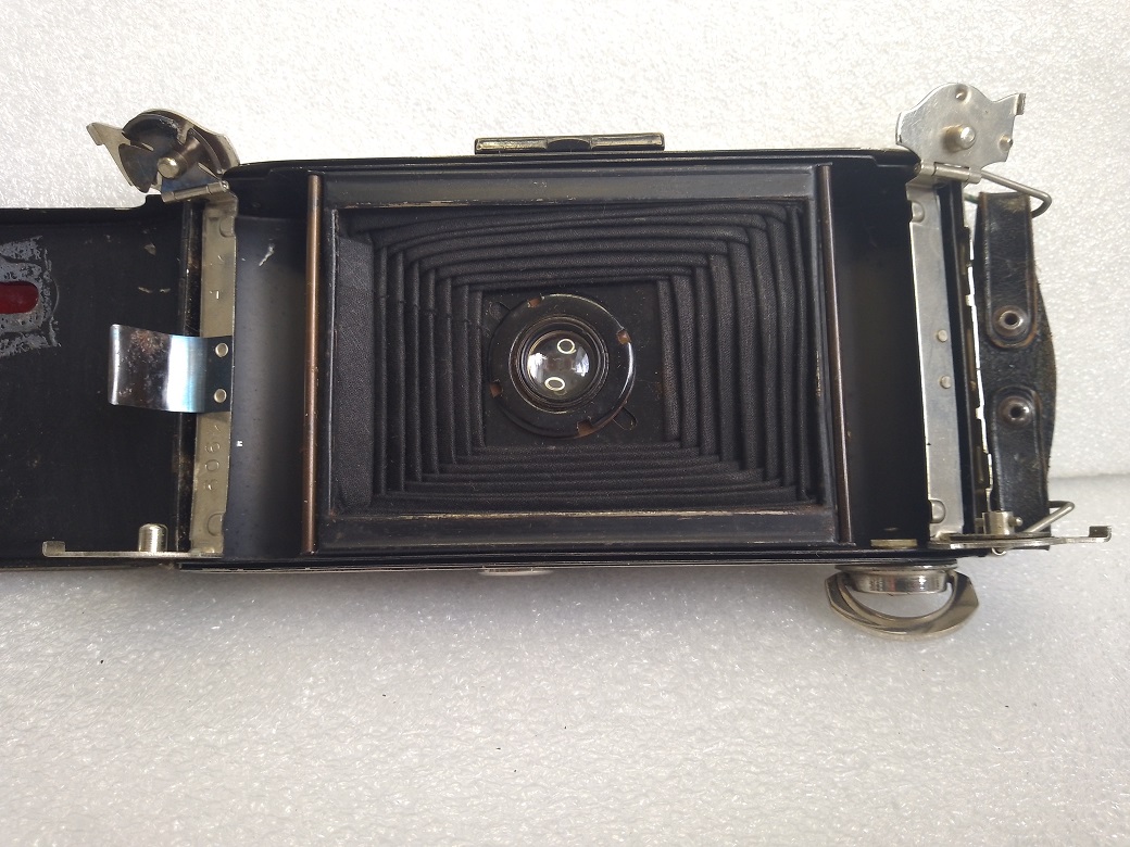 Hersteller: Agfa Kamerawerk München Modell: Billy Record 7,7 Typ: Rollfim (120er bzw. B2) Balgenkamera mit Brillant- und Rahmen/Sportsucher, Format 6x9, max. 8 Aufnahmen Baujahr:1933 Seriennummer: 1F 1909 Verschluß: Agfa Verschluß, "B", 1/25 - 1/100 Sekunde mit Drahtauslöseranschluß Blenden: 7,7, 11 und 16 Objektiv: Agfa Anastigmat Igestar 7,7/10cm Fokussierung: manuell, 2 - 5 Meter (Nahbereich) und 5 Meter bis unendlich (Fernbereich) Gewicht: ca. 515 Gramm Abmessungen: 151x74x31 Neupreis (1933): 24 RM