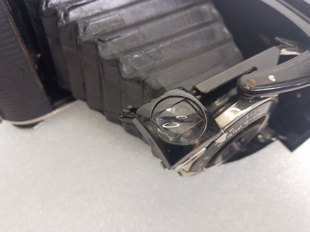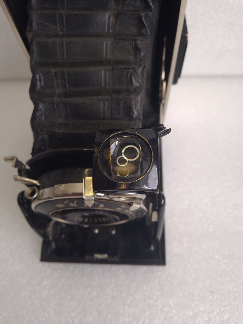 bei der gleich vorzustellenden Agfa Billy Record 7,7 dürfte es sich um ein sehr frühes Exemplar dieser Baureihe handeln. Zum Einen ist das Rotfenster noch nicht durch Abdeckungen ( wie bei späteren Baujahren) gegen Lichteinfall geschützt, zum Anderen wird der Bildausschnitt im Brillantsucher nicht wie bei späteren Modellen durch eine kreuzförmige Blende begrenzt. Bei dieser Kamera "wandert" die Blende durch einen raffinierten Mechanismus beim Verdrehen des Brillantsuchers mit. Wahrscheinlich wurde aus Kostengründen im weiteren Verlauf der Produktion auf diese Verstellung verzichtet.