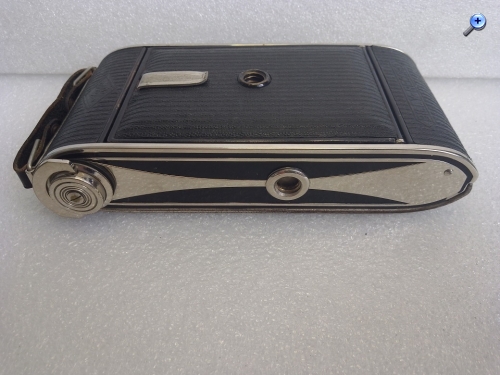 Auf den ersten Blick fallen bei dieser Kamera die Verzierungen auf Ober- und Unterseite im Art-Deco-Stil auf. Dies verleiht der Kamera nicht nur einen eleganten Auftritt sondern läßt den Apparat auch hochwertig erscheinen. Auf Wunsch gab es die Billy Record mit belederten Ober- unt Unterseiten.