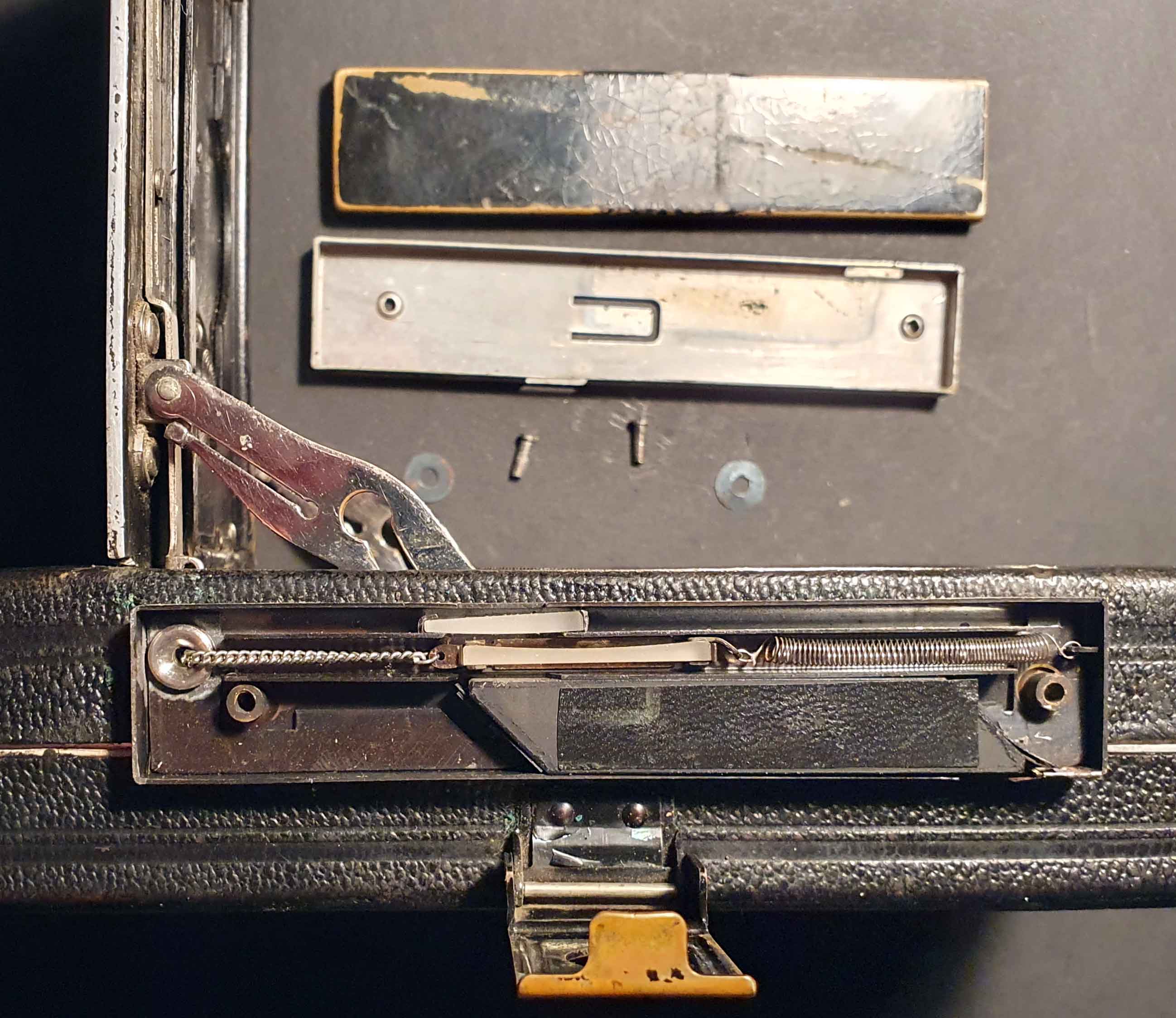 Die Agfa Standard-Konstruktionen sind mehrfach patentrechtlich geschützt. Die Fokussiereinrichtung mit Radialhebel zum Beispiel basiert auf dem Patent 489897 vom 2. Februar 1927. (Als Erfinder wird im Patent Leo Goldhammer genannt, der zunächst bei Contessa-Nettel gearbeitet hatte, bevor er Leiter der Konstruktion bei Bayer/Ritzschel uns später bei der Kamerasparte der IG Farbenindustrie (Agfa) wurde. Zahlreiche Patente der Agfa-Standard, -Billy und -Box-Konstruktionen basieren auf seinen Entwürfen.) Der Scharfeinsteller wurde im Patent 510531 vom 25. Juni 1927 geschützt. Gebaut wurde die Standard 264 mit Scharfeinsteller laut Auskunft der zeitgenössischen Quellen jedoch erst ab 1930. Abweichend von anderen ‚Messsuchern‘ sieht man im Sucher der Agfa kein Misch- bzw. Schnittbild, sondern nur ein Bild. Um nun die exakte Entfernung einzustellen, muss man das Bild des Suchers mit dem darüberliegenden tatsächlichen Motiv in Übereistimmung bringen. Das erscheint ein wenig ungewöhnlich, funktioniert aber ganz praktikabel (sehen kann man das z.B. hier: https://silversaltz.wordpress.com/2012/0...d-120-rollfilm/ ). Etwas kurios finde ich auch die Übertragung der Fokusbewegung mittels Kettenzug: